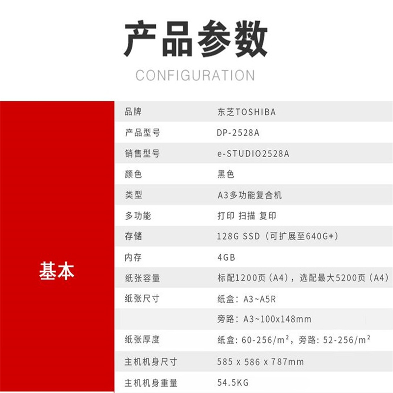 商品标题:东芝(TOSHIBA)DP-2528A多功能复合机 A3黑白网络双面打印复印扫描 自动输稿器+双面器+双纸盒