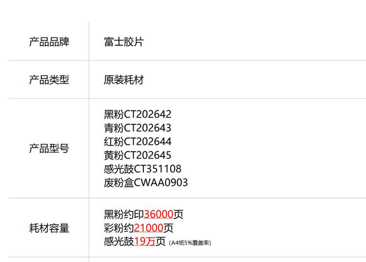 富士胶片(FUJI FILM)VI C2271/C3371/C4471黄色原装墨粉盒(VI六代机适用)/CT202645约21000页(单位:支)