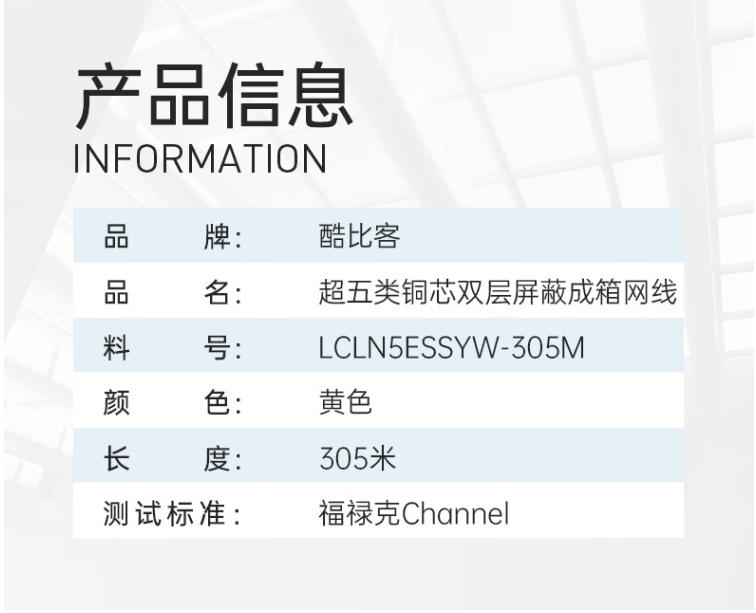 商品标题:酷比客LCLN5ESSYW-305M成箱网线(箱)