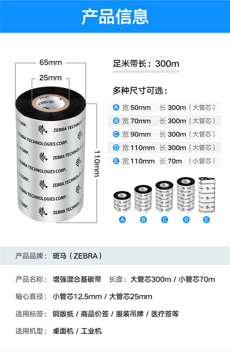 商品标题:斑马牌(ZEBRA)110*70M 混合基碳带(单位:卷)