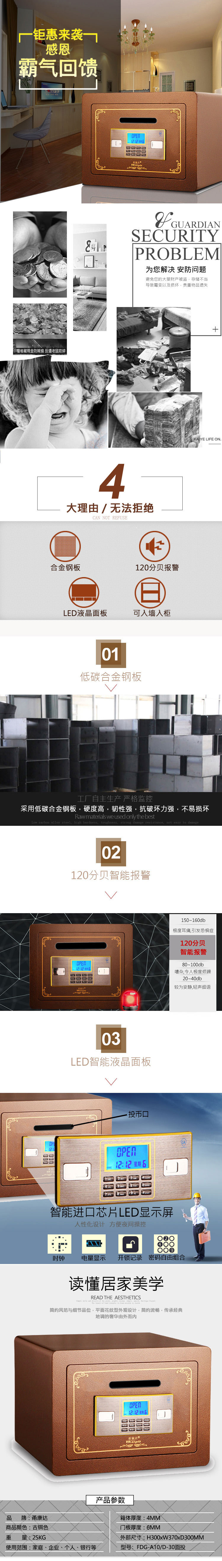 商品标题:甬康达FDG-A10/D-30面投电子密码保险箱/柜(单位:台)