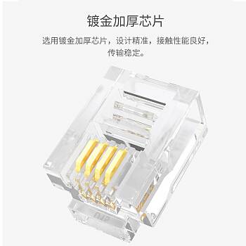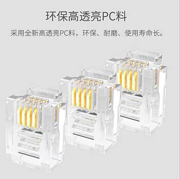 品牌:山泽 型号:SJ-3250 类型:电话水晶头 接口:6P2C/RJ11 规格:50个/包