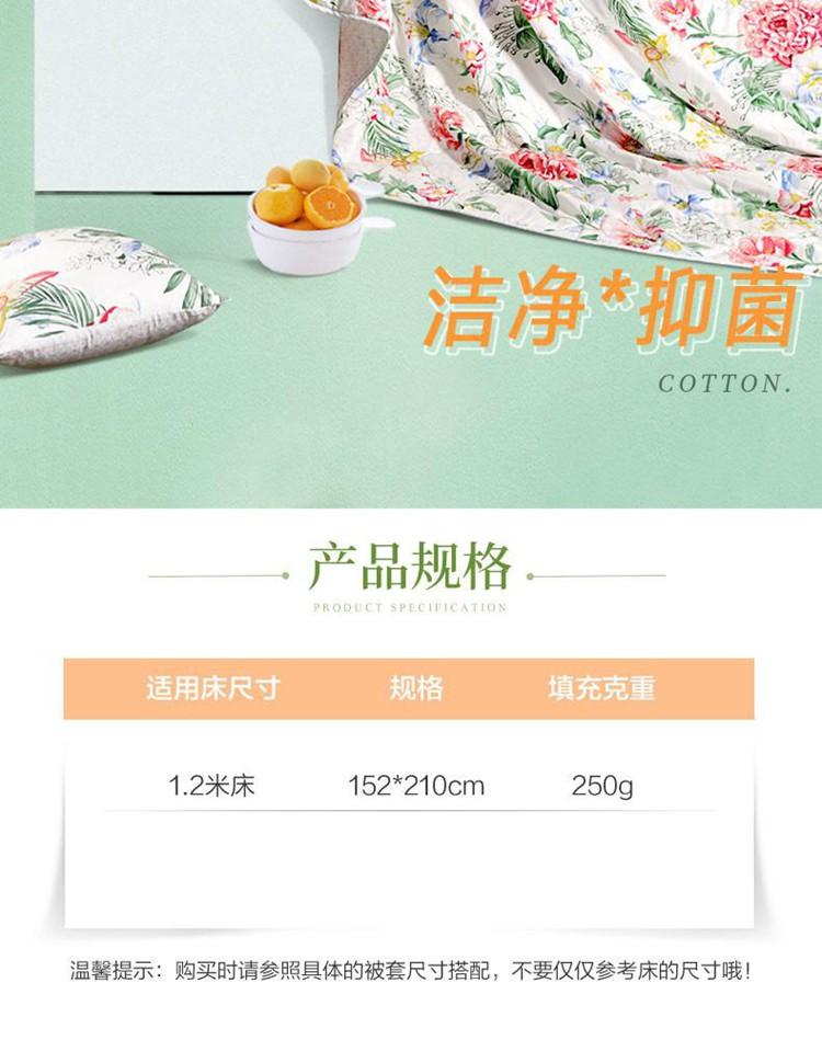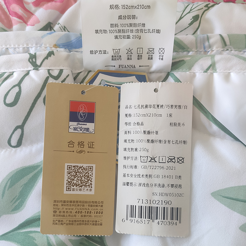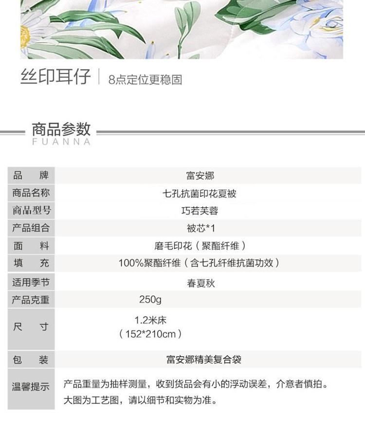 商品标题:富安娜(FUANNA)七孔抗菌印花夏被巧若芙蓉 152*210cm(单位:床)