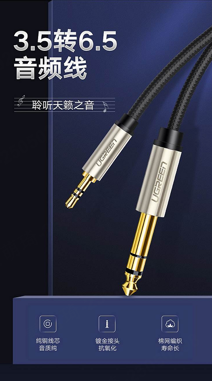 商品标题:绿联40805/3.5转6.5音频线3米(根)