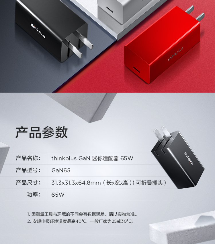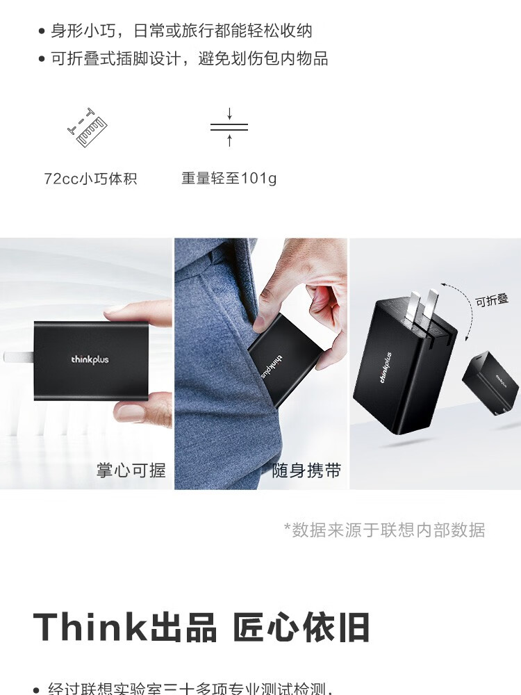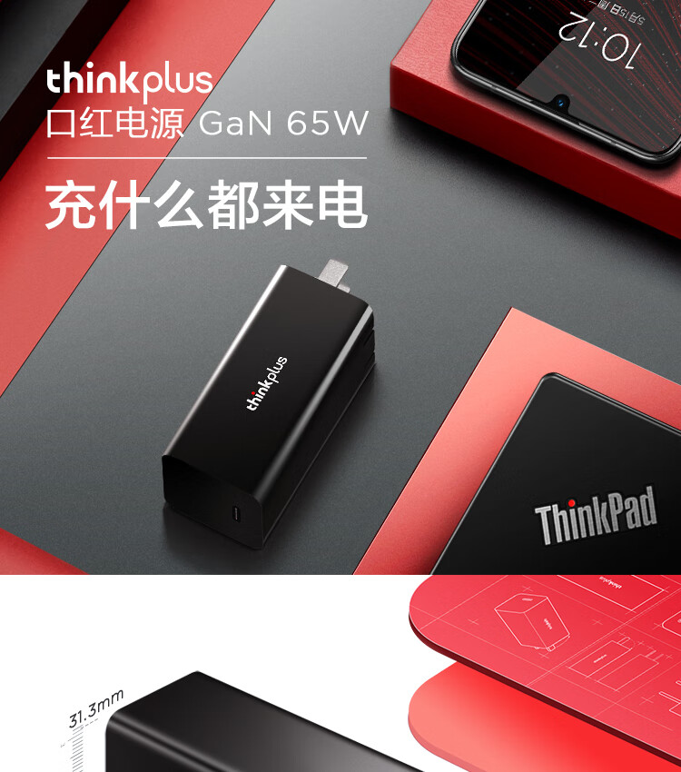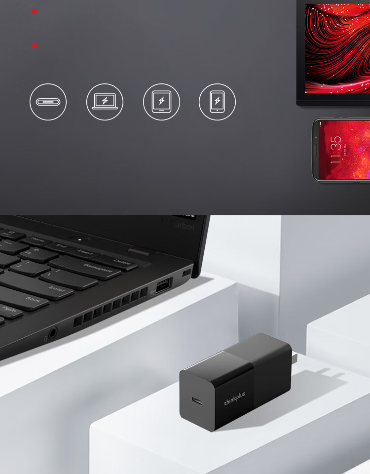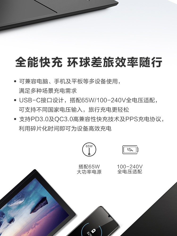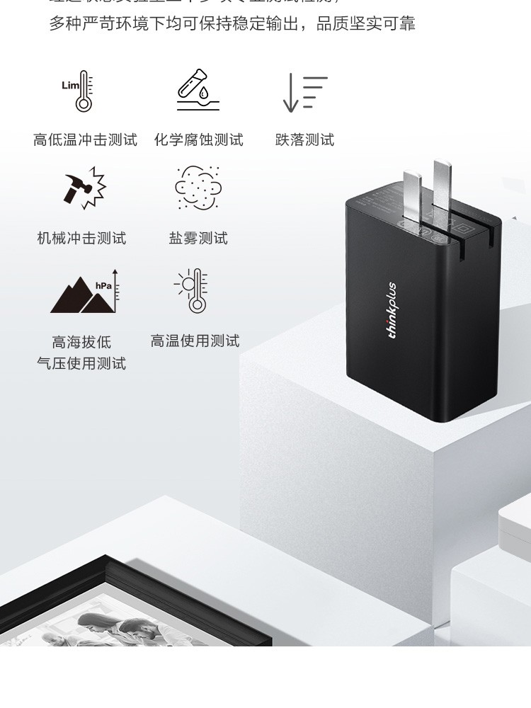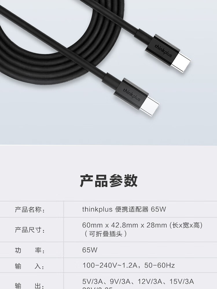 商品标题:联想thinkplus GaN 4X21K18302迷你电源适配器65W Type-C接口黑色(个)
