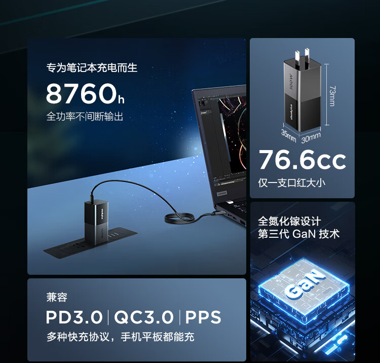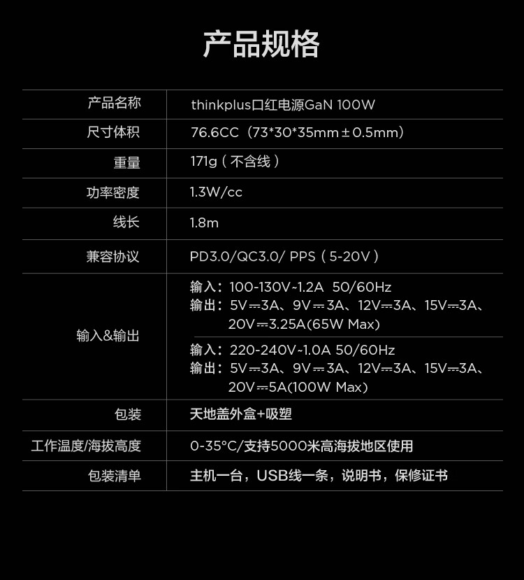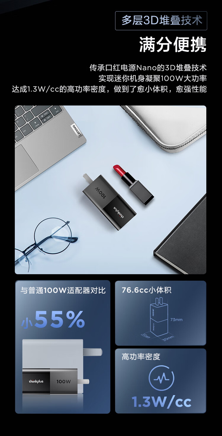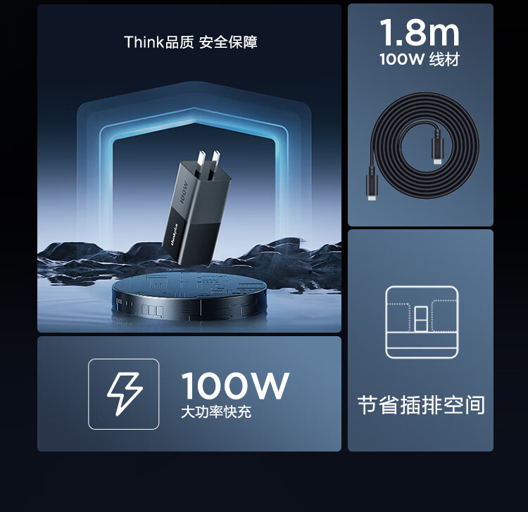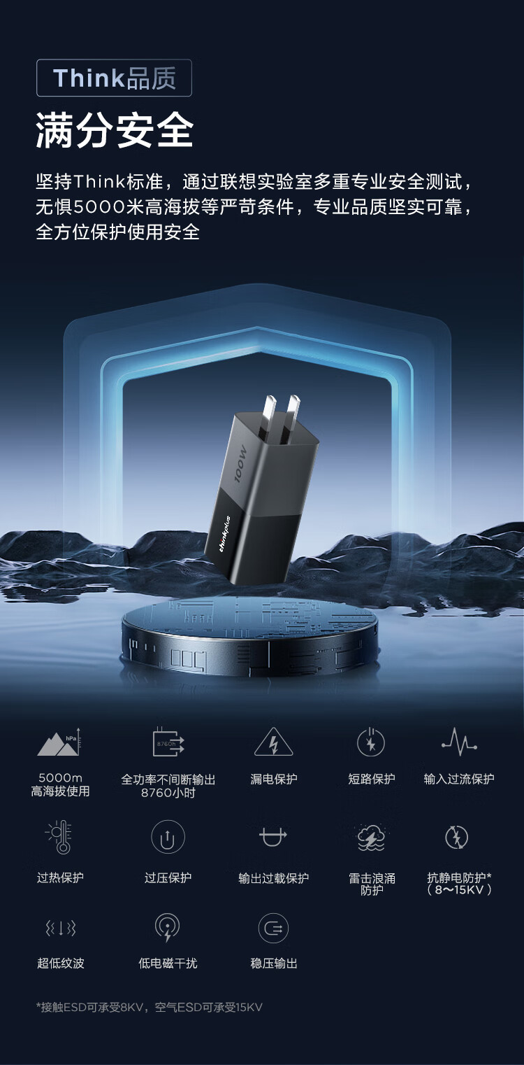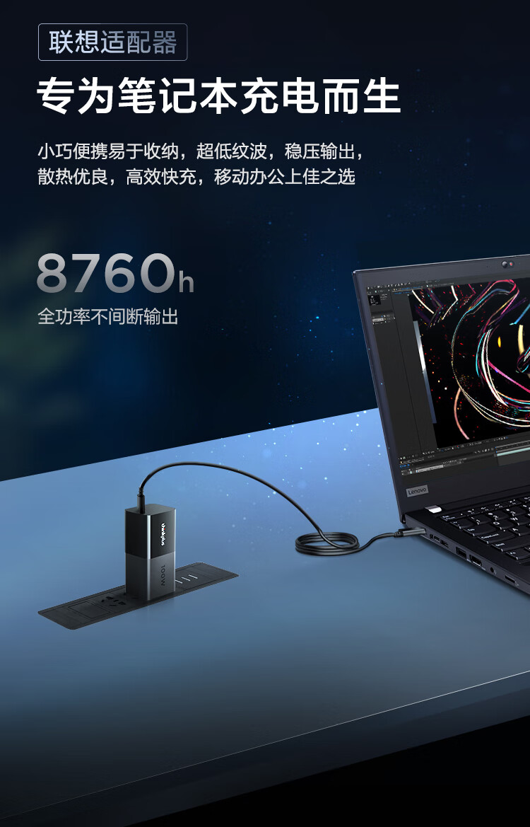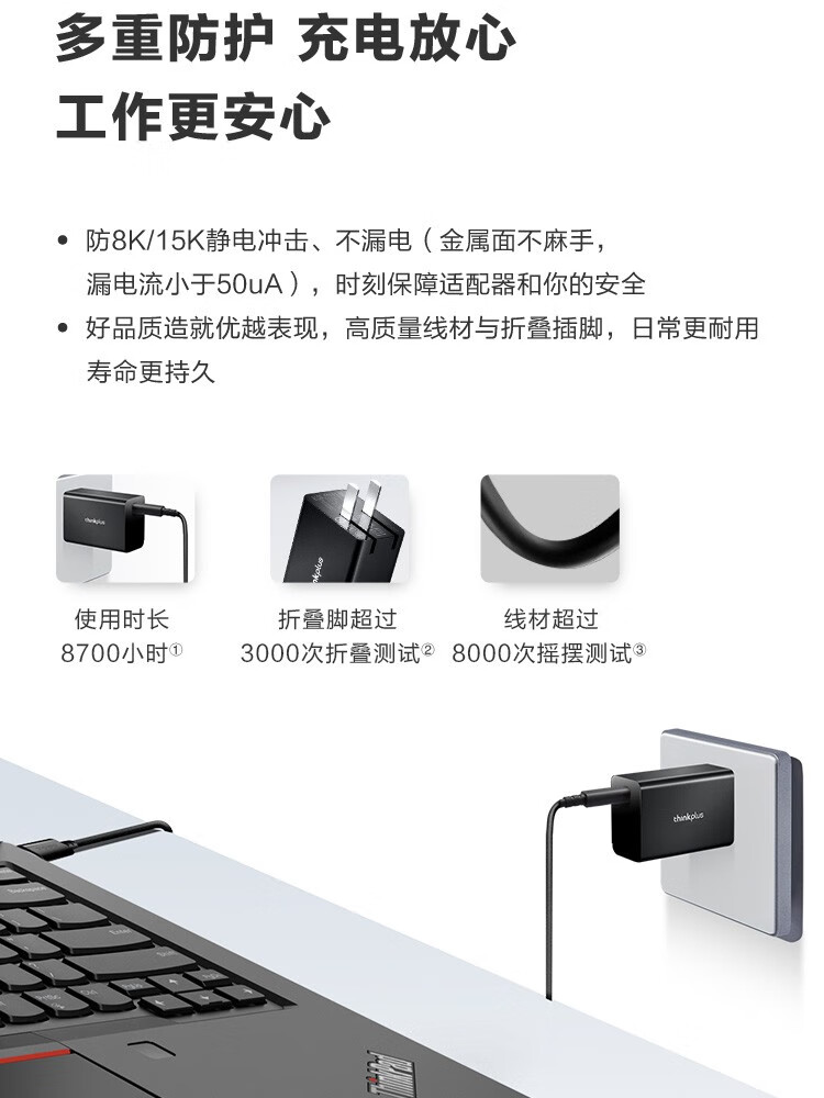 商品标题:联想thinkplus GaN 4X21K18302迷你电源适配器65W Type-C接口黑色(个)