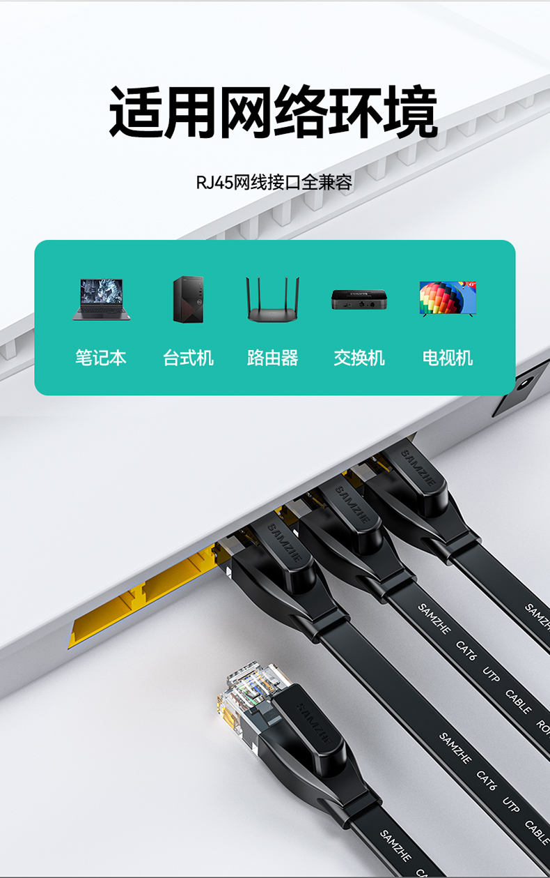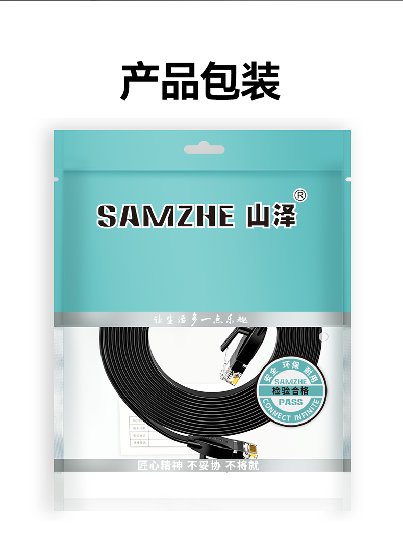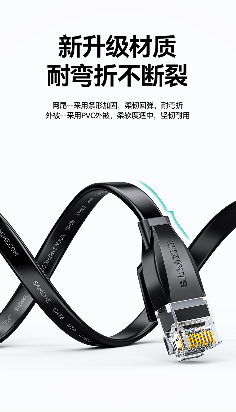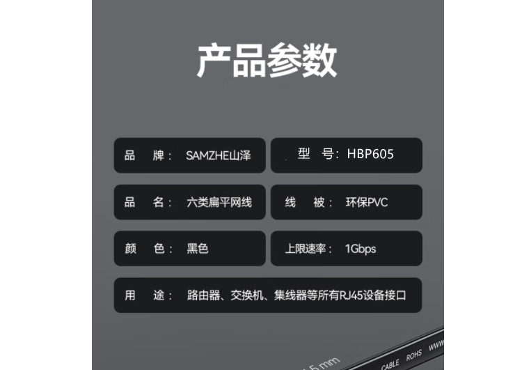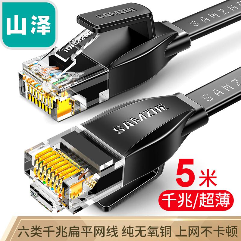 商品标题:山泽HBP605六类千兆非屏蔽扁平网线5米黑色(单位:根)