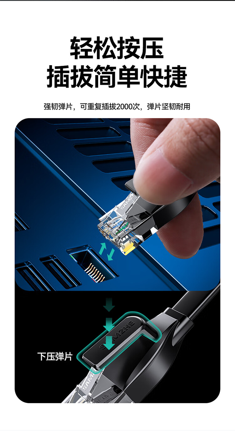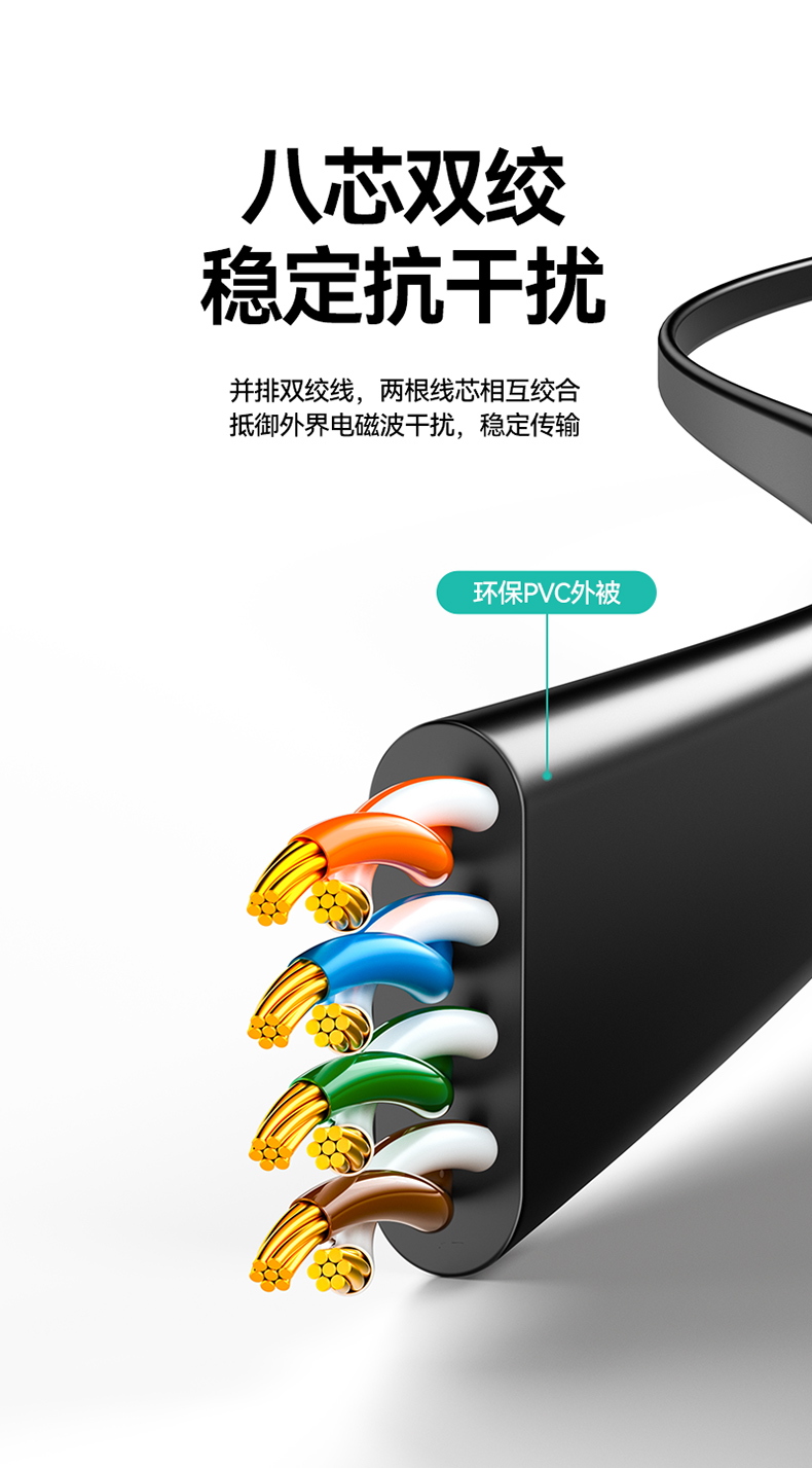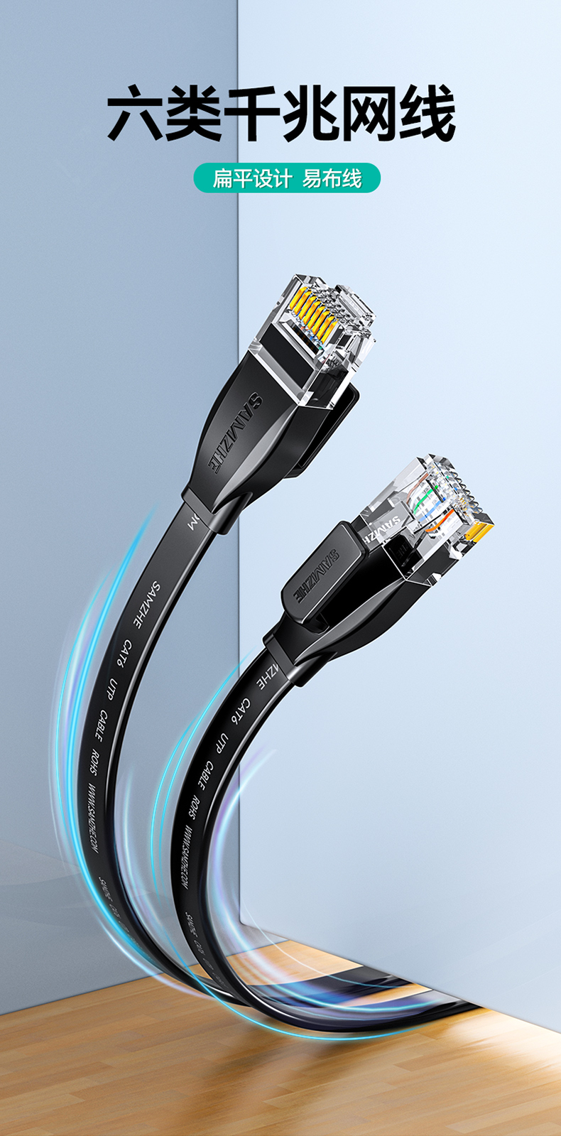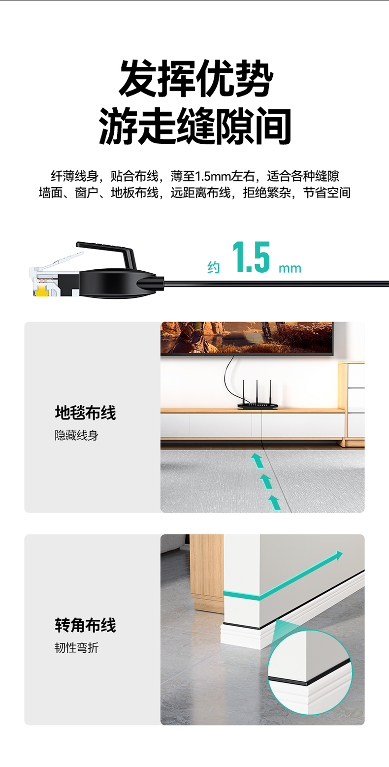 商品标题:山泽HBP605六类千兆非屏蔽扁平网线5米黑色(单位:根)