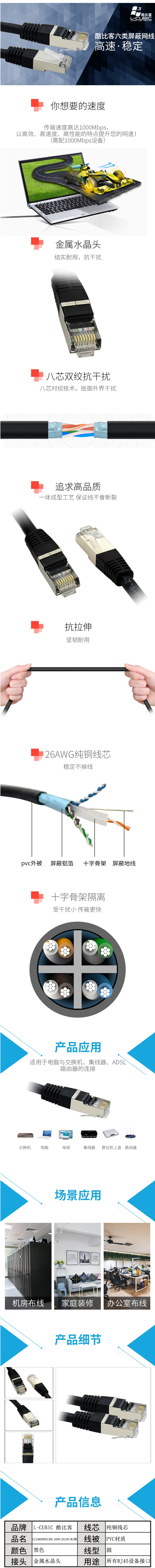 商品标题:酷比客LCLN6RRECBK-20M六类非屏蔽纯铜网线黑色20M(根)
