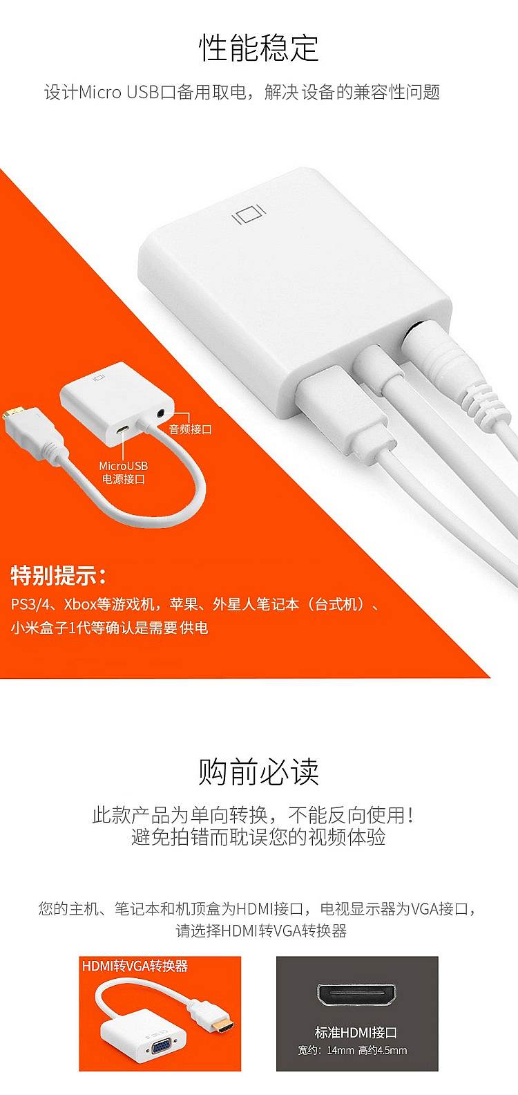商品标题:酷比客LCAVHVAW/HDMI转VGA转接线白0.2m(根)