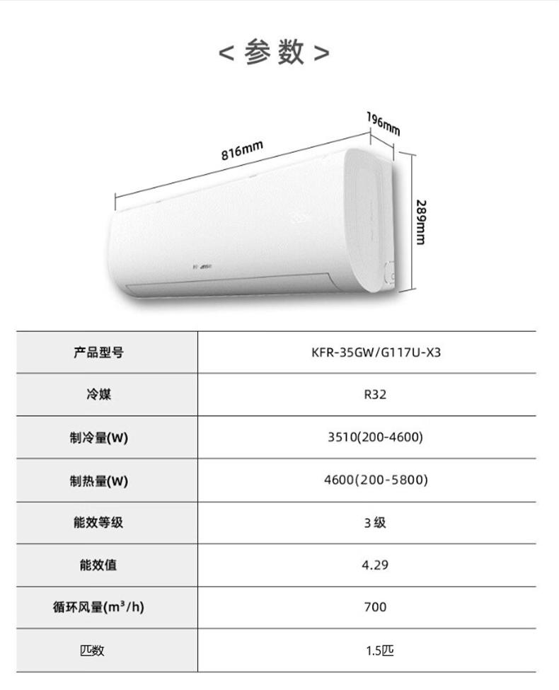 商品标题:海信(Hisense)壁挂式空调 白色 KFR-35GW/G117U-X3(套)