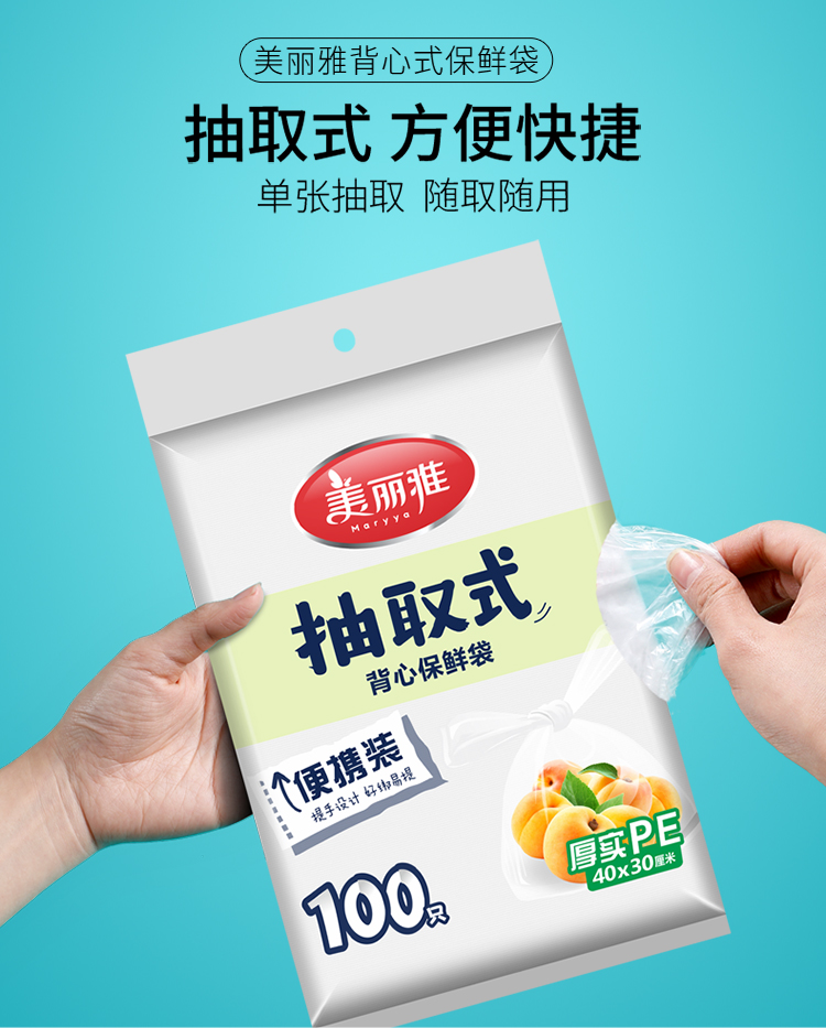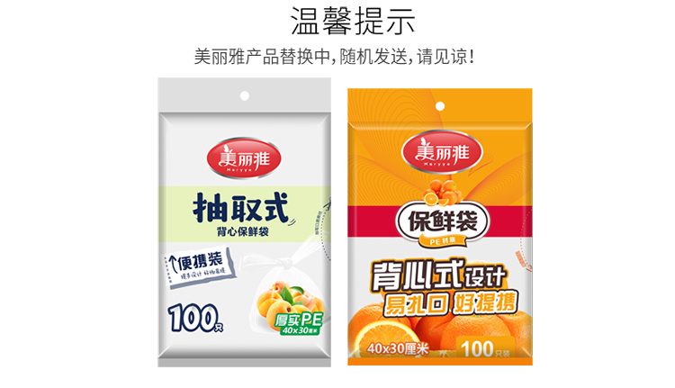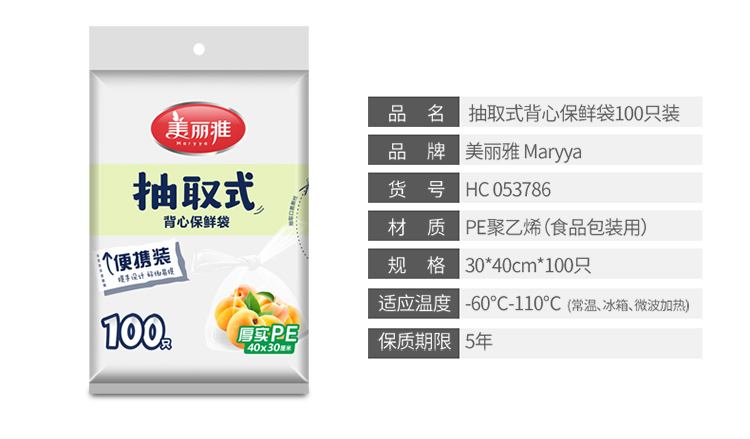 商品标题:美丽雅 HC053786 30*40cm*100只 抽取式背心保鲜袋(单位:包)