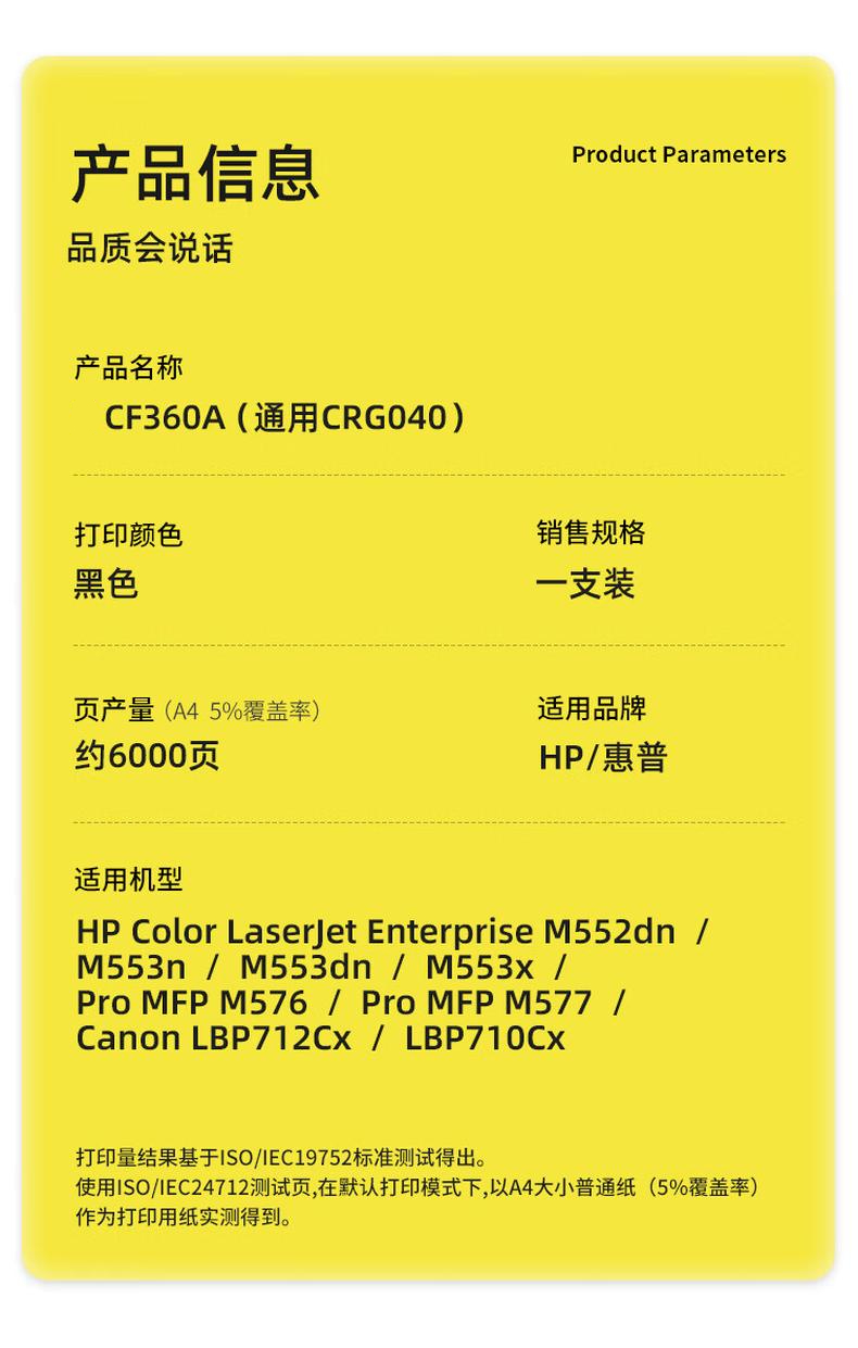 科思特(KST)兼容K CF360A硒鼓(鼓粉一体)黑色单支装(适用HP Color LaserJet Enterprise M552dn/M553n/M553dn/M553x/Pro MFP M576/Pro MFP M577/Canon LBP712Cx/LBP710Cx)打印页数:6000页(支)
