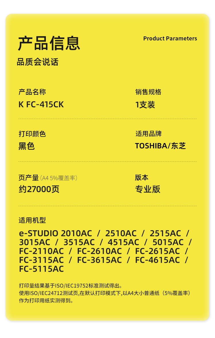 科思特(KST)兼容K FC-415CK 粉盒(鼓粉分离)黑色单支装(适用东芝e-STUDIO 2010AC/2510AC/2515AC/3015AC/3515AC/4515AC/5015AC)打印页数:27000页(单位:支)