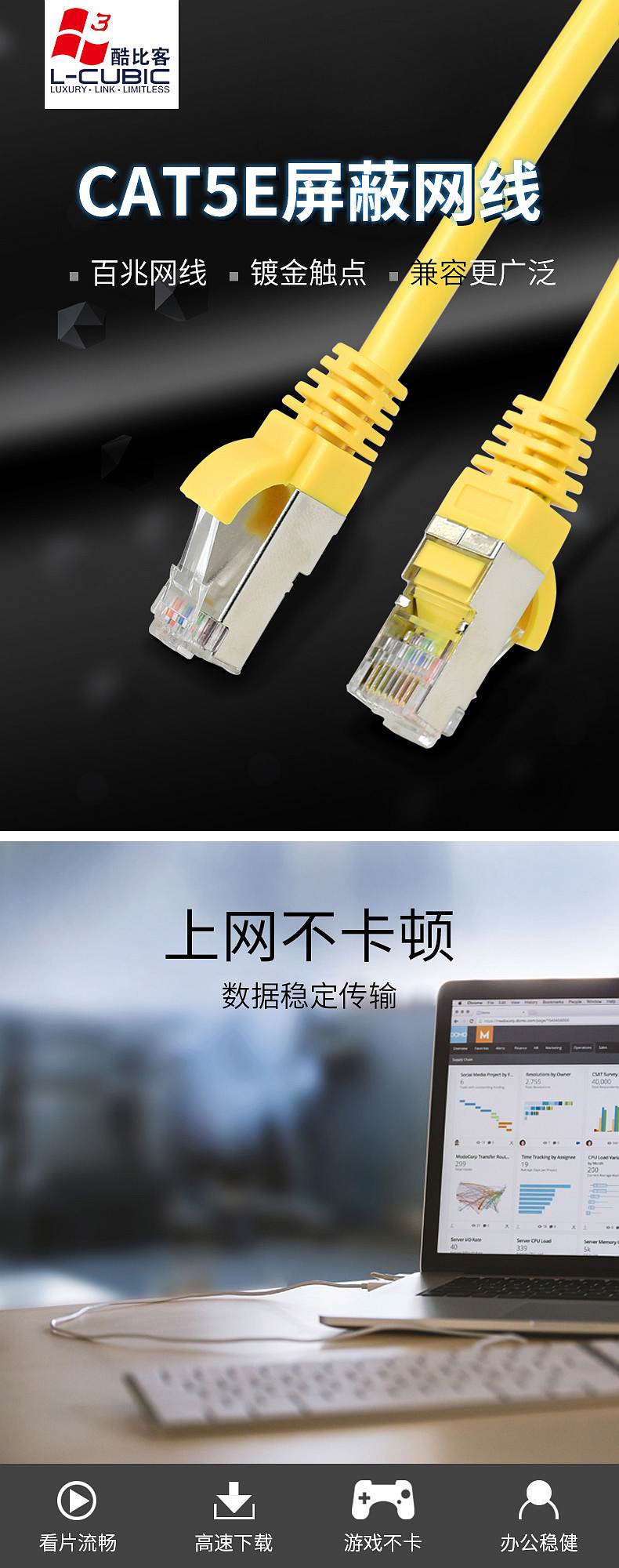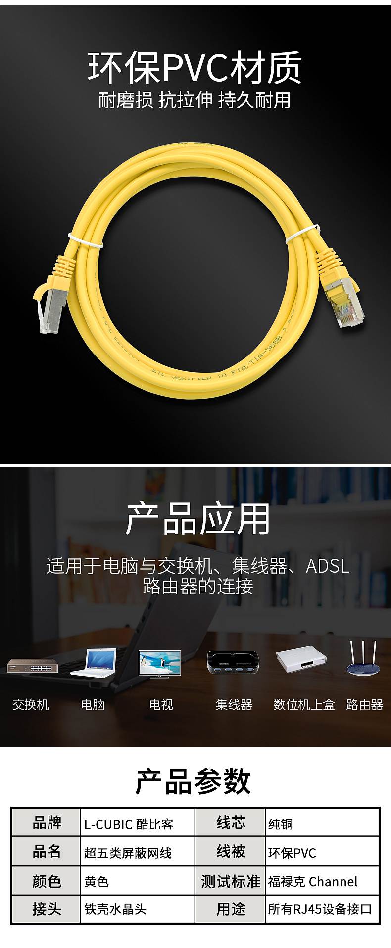 商品标题:酷比客LCLN5ERRSYW-2M超五类屏蔽网络线黄色2m(根)