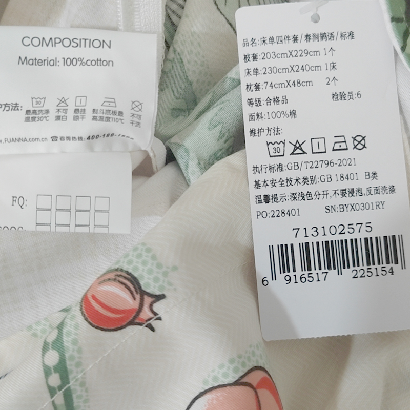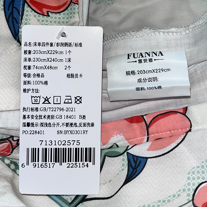 规格:被套:203*229cm 床单:230*240cm 枕套:74*48cm