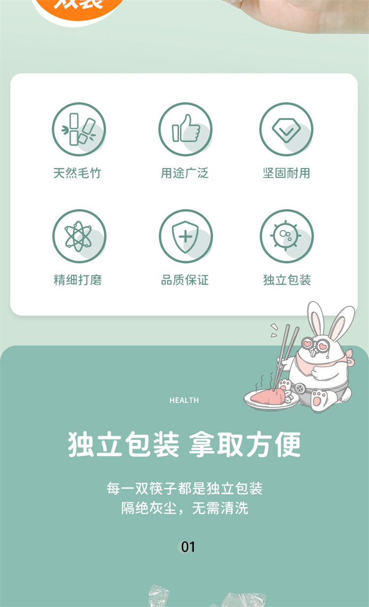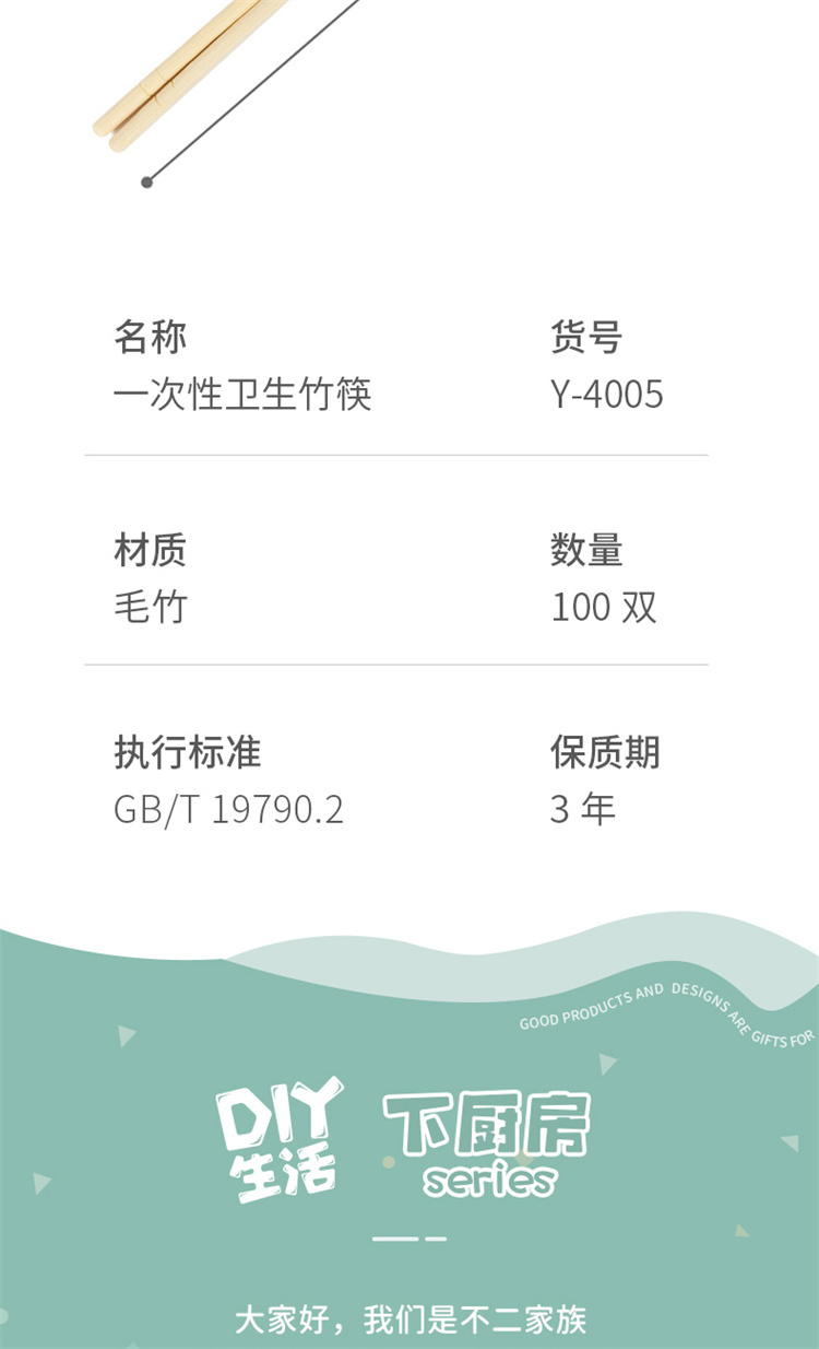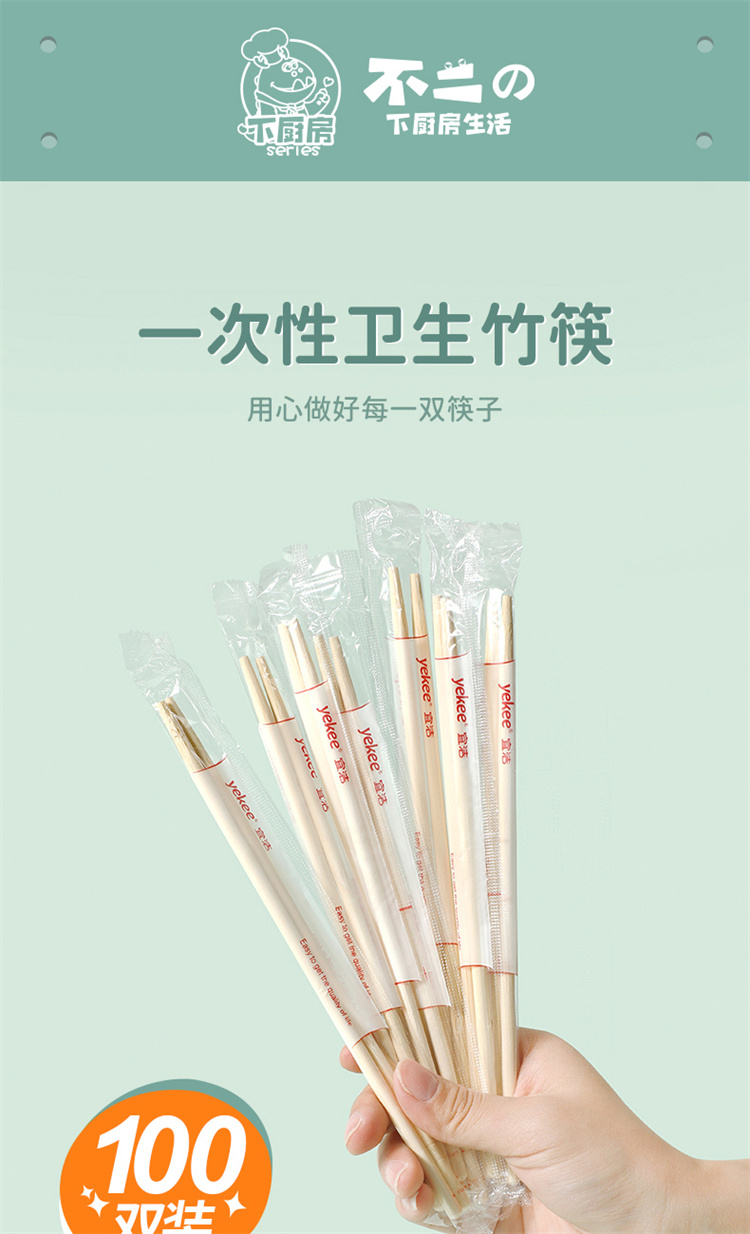 商品标题:宜洁 Y-4005 一次性竹筷子独立包装 长20cm 100双装(袋)