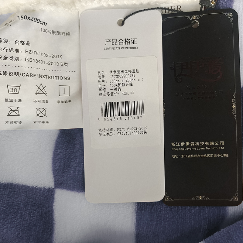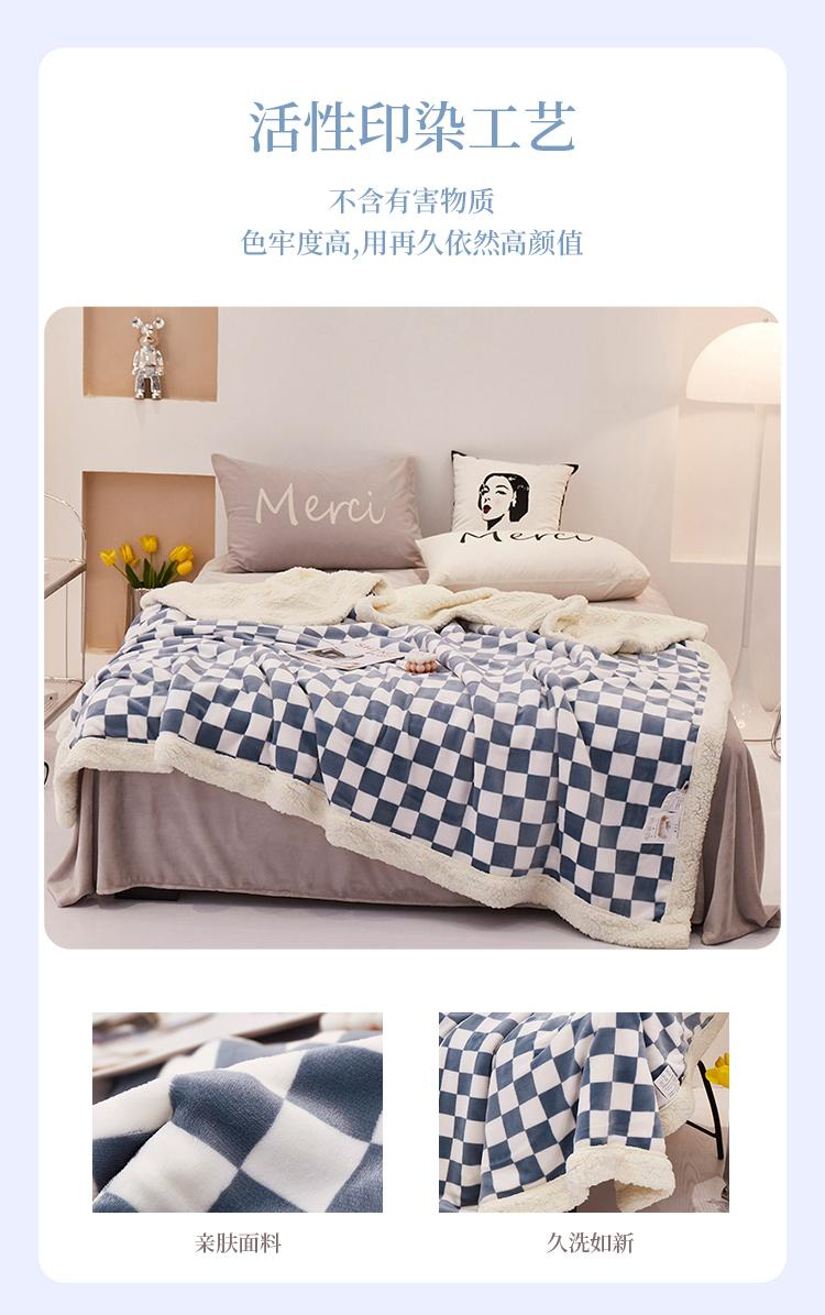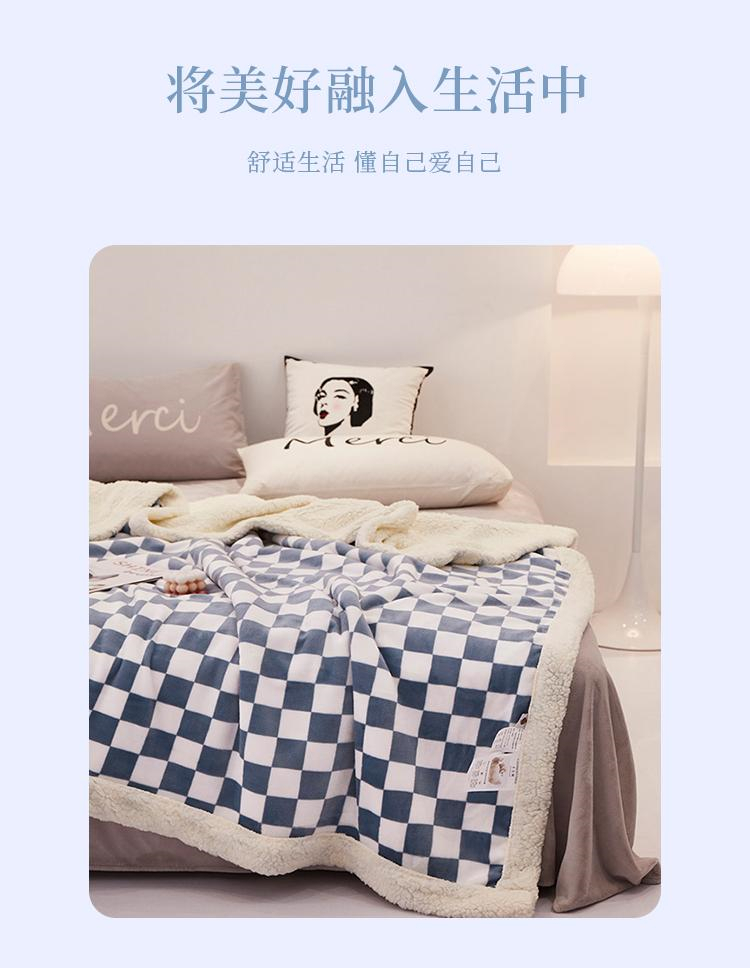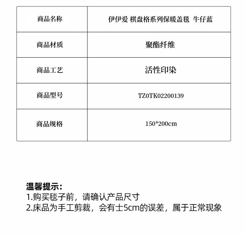 商品标题:伊伊爱TZ0TK02200139棋盘格系列保暖盖毯150*200cm(单位:条)牛仔蓝