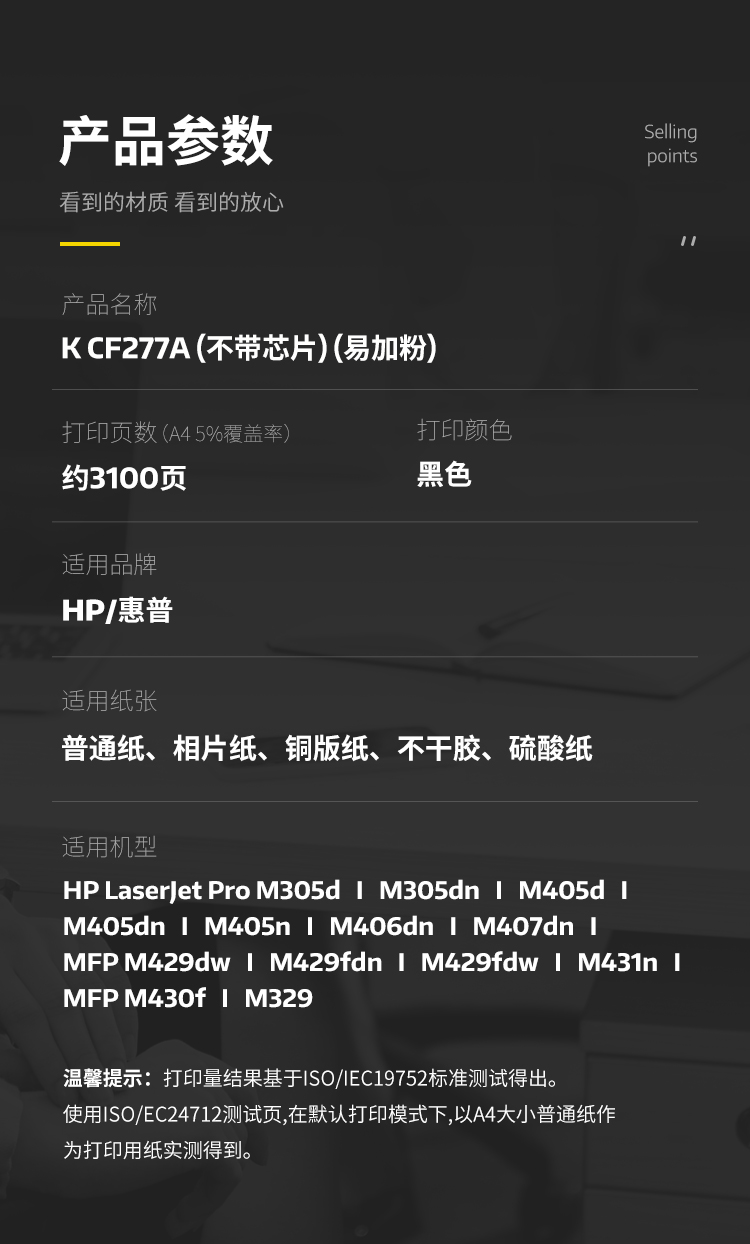 商品标题:科思特(KST)K CF277A 不带芯片 易加粉兼容硒鼓 黑色(支)