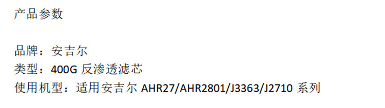 商品标题:安吉尔(angel)净水器配件 400G-RO 滤芯适用于AHR27/AHR2801/J2313-ROS63(单位:支)