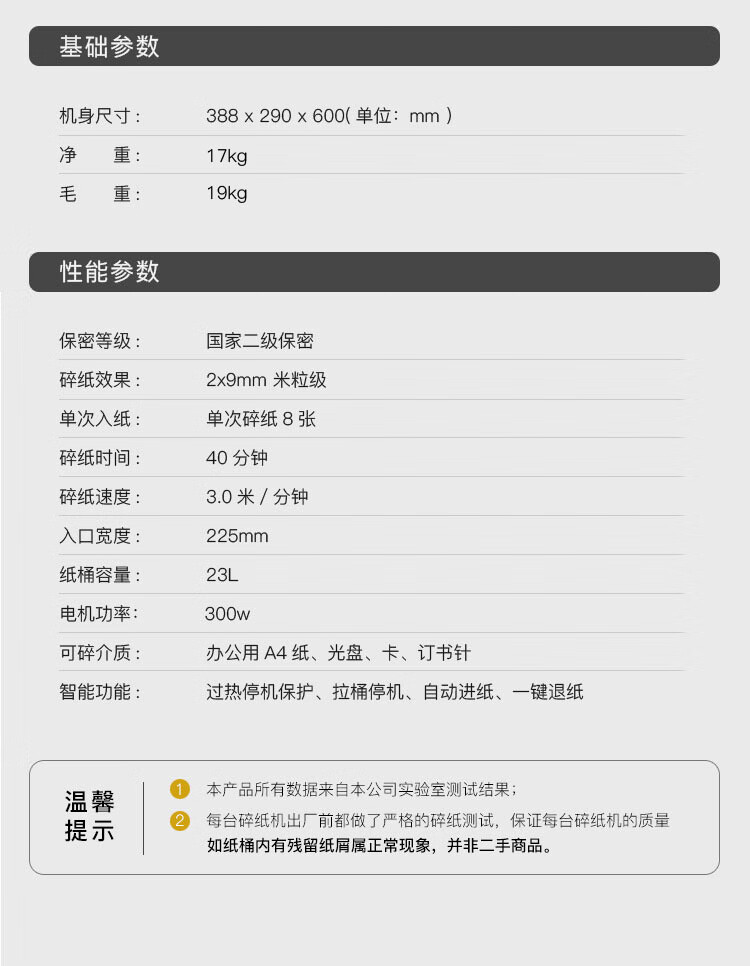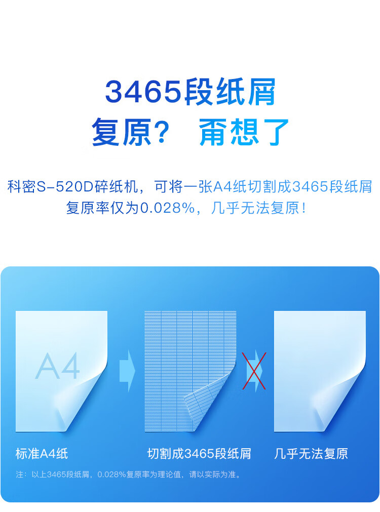 商品标题:科密(comet)S-520D 国家二级保密认证办公商用碎纸机(台)