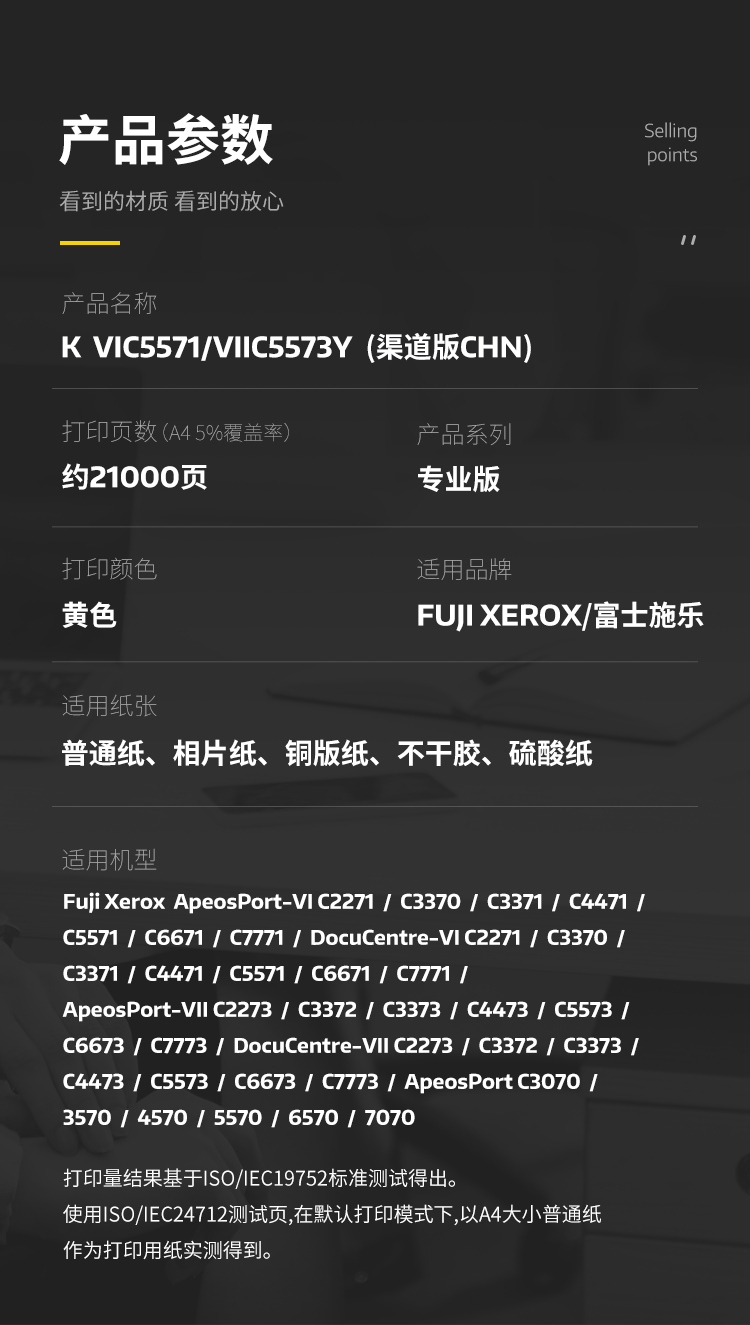 科思特(KST)兼容K VIC5571/VIIC5573Y (CT202645)墨粉筒(渠道版CHN)黄色单支装(适用富士施乐VI C2271/C3370/C3371/C4471/C5571/C6671/C7771)打印量21000页(单位:支)