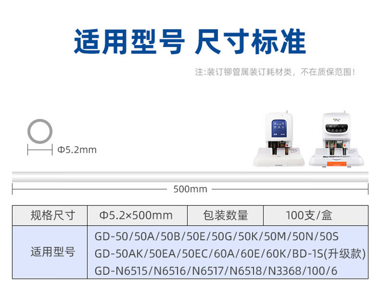 商品标题:金典 装订铆管 φ5.2mm 100支/盒(盒)