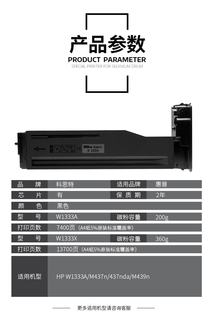 科思特 W1333A 墨粉筒(小容量) 适用惠普W1333A/M437n/437nda/M439n 黑色 BK(支)