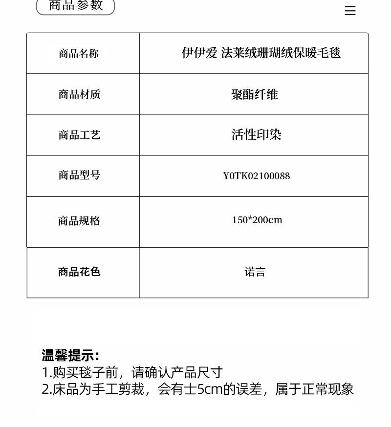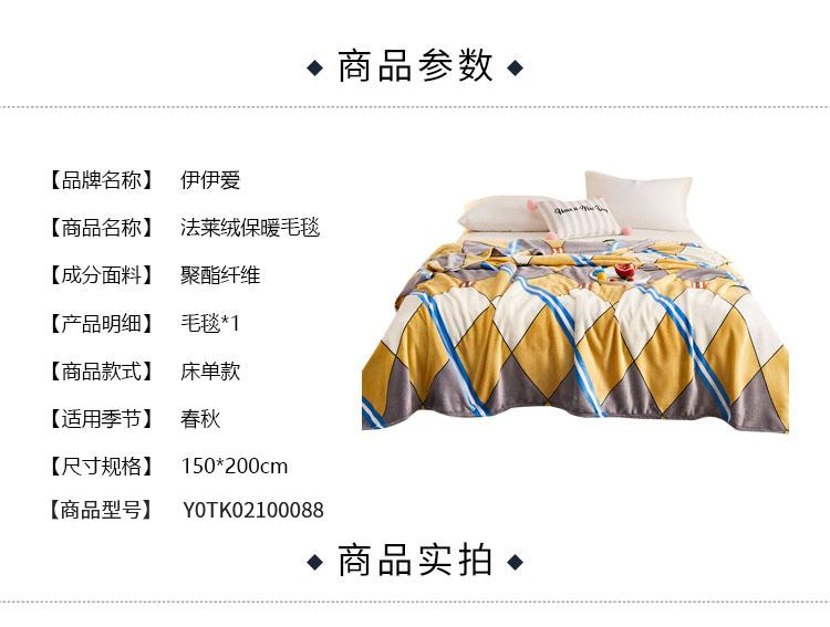 伊伊爱Y0TK02100088 法莱绒保暖毛毯 150*200cm(条)诺言