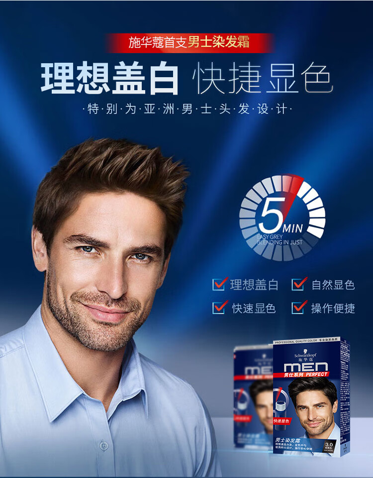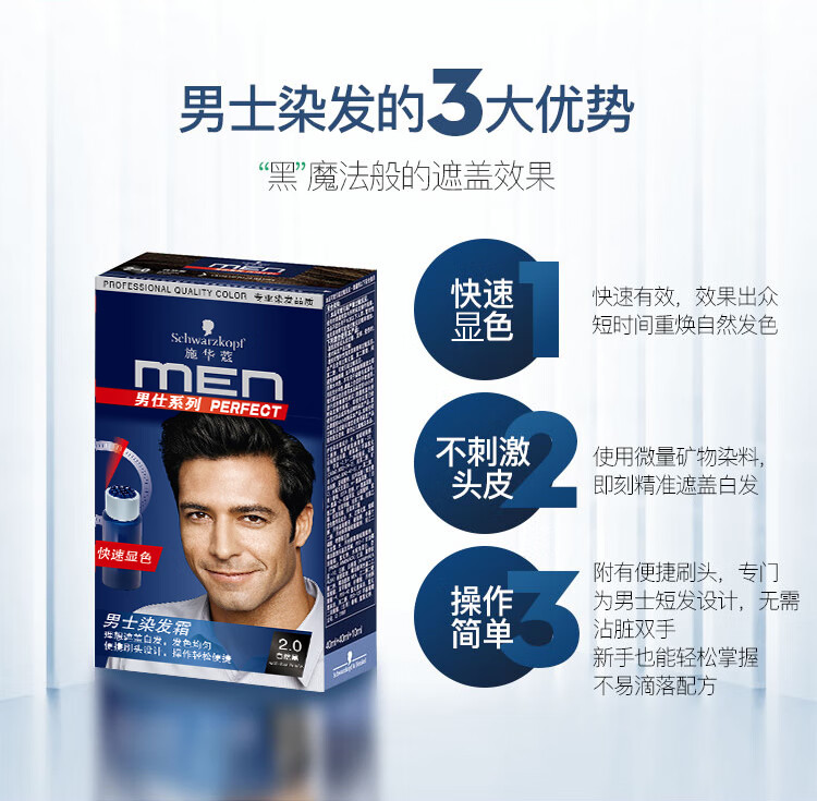 商品标题:施华蔻(Schwarzkopf)施华蔻男士染发霜3.0棕黑色(2016)