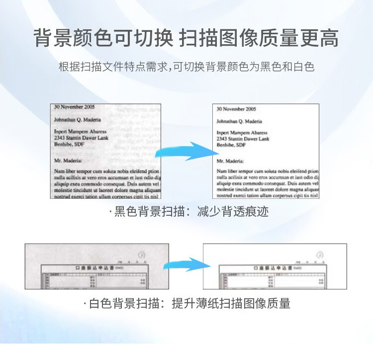 扫描介质:名片,明信片, A4, US letter, Legal, A5, A6, B5, B6, 长纸, A3, B4, 信封, Ledger(17x11in), Tabloid(11x17in), RA3(12x17in), PL Card(有/无浮雕),