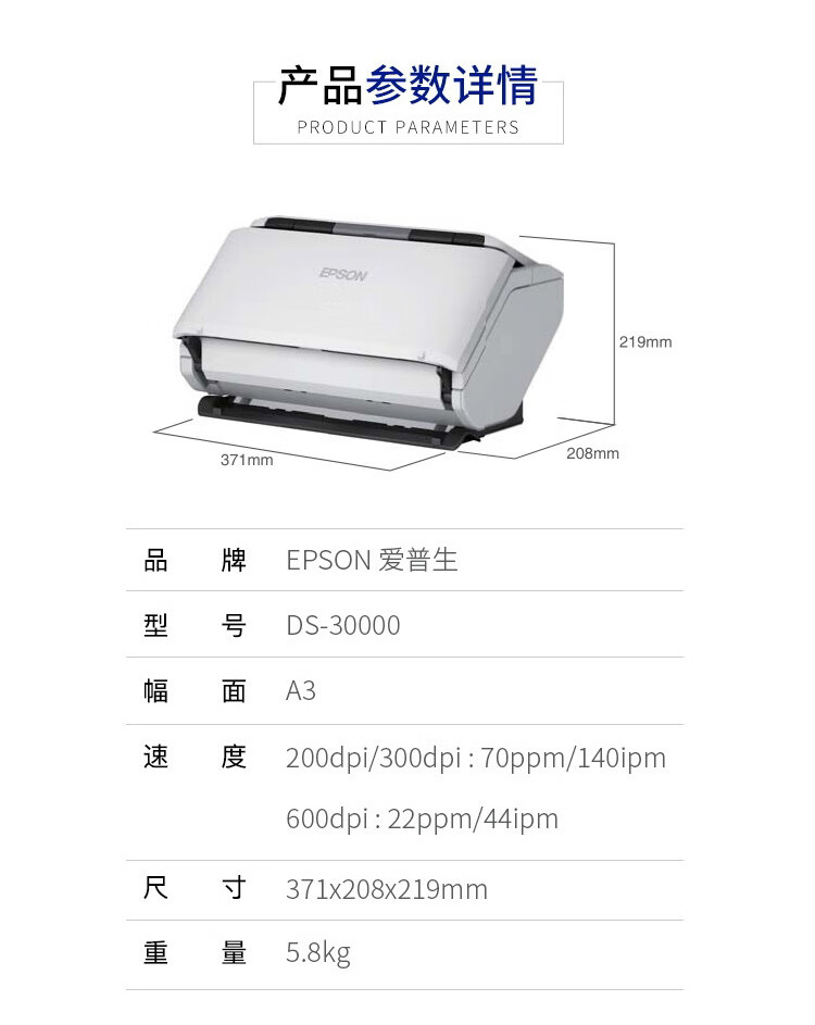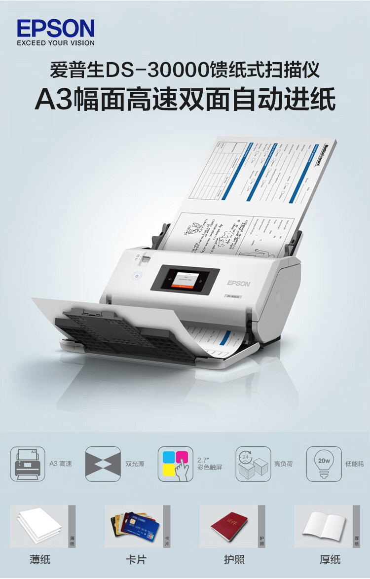 爱普生DS-30000大幅面馈纸式彩色文档高速扫描仪灰色A3(台)