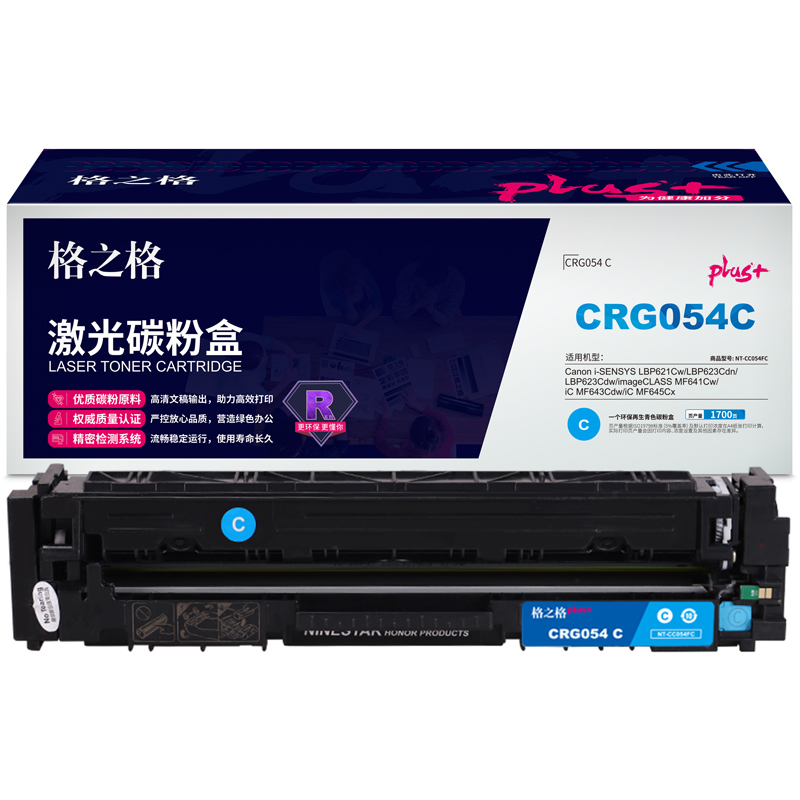 格之格NT-CC054FCplus+兼容CRG054C蓝色硒鼓(适用Canon i-SENSYS LBP621Cw/ LBP623Cdn/ LBP623Cdw/ imageCLASS MF641Cw/ iC MF643Cdw/ iC MF645Cx)打印量1700页(单位:个)