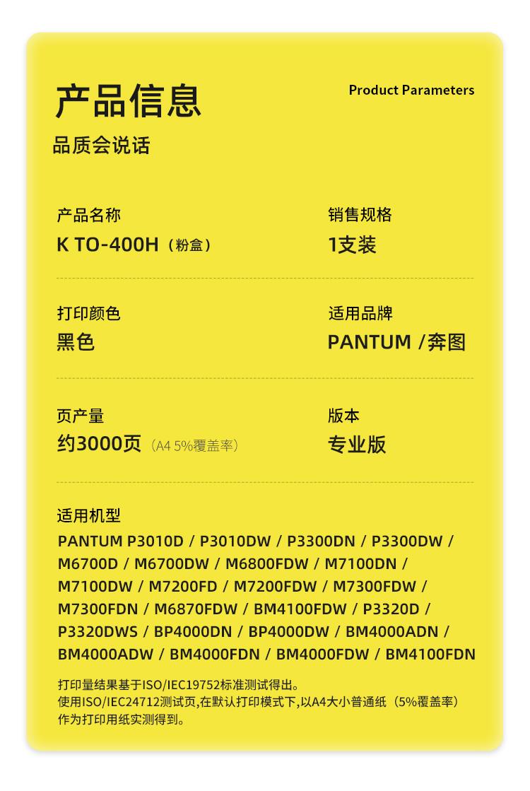 科思特(KST)兼容K TO-400H粉盒(鼓粉分离)黑色单支装(适用PANTUM P3010D/P3010DW/P3300DN/P3300DW/M6700D/M6700DW/M6800FDW)打印页数:3000页(支)
