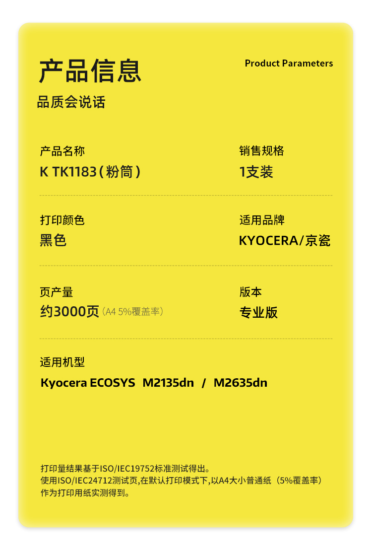 科思特(KST)兼容K TK1183 粉筒(鼓粉分离)黑色单支装(适用京瓷 ECOSYS M2635DN/M2135DN))打印页数:3000页(单位:支)专业版