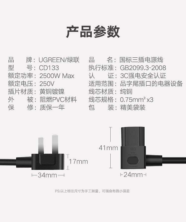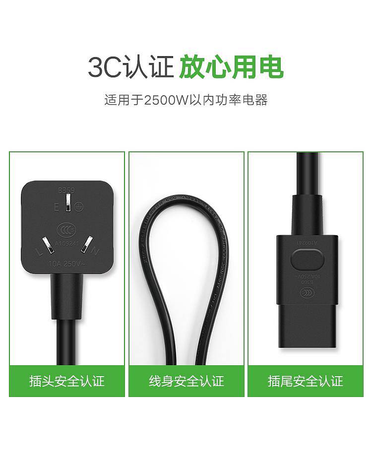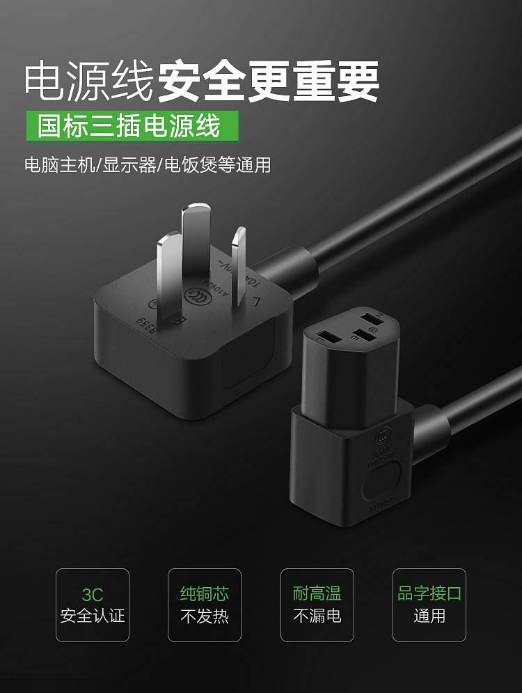 商品标题:绿联409111.5米电脑主机电源线显示器屏电线插头黑(个)
