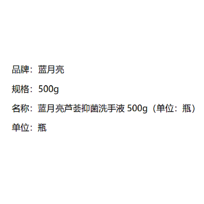 商品标题:蓝月亮芦荟抑菌洗手液500g(单位:瓶)