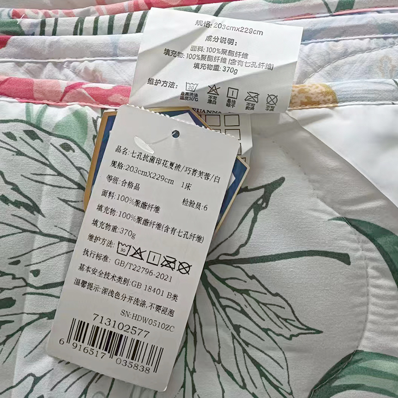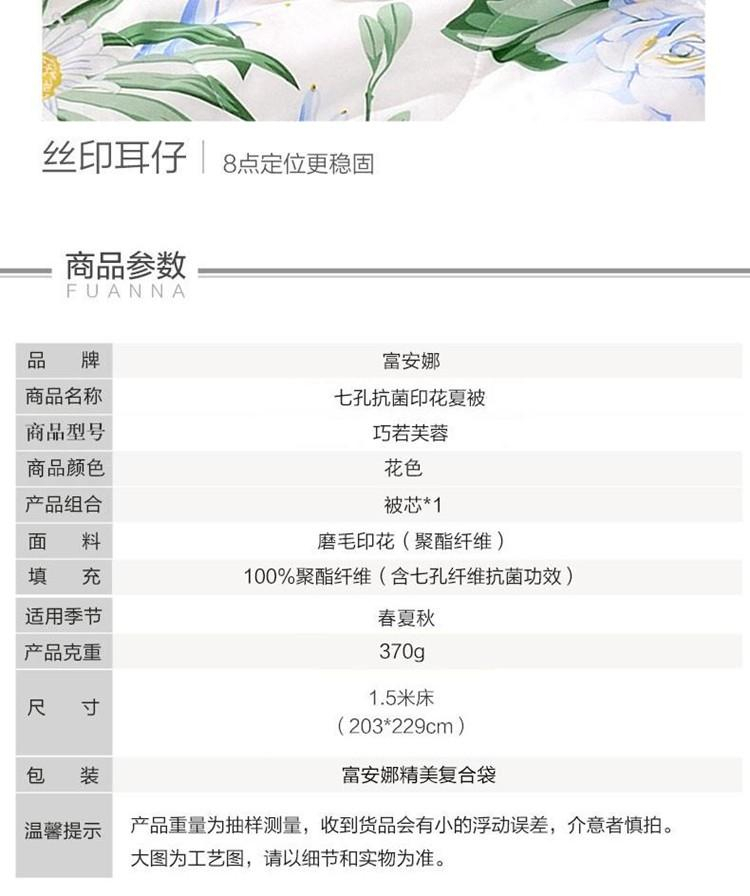 商品标题:富安娜(FUANNA)七孔抗菌印花夏被巧若芙蓉 203*229cm(单位:床)