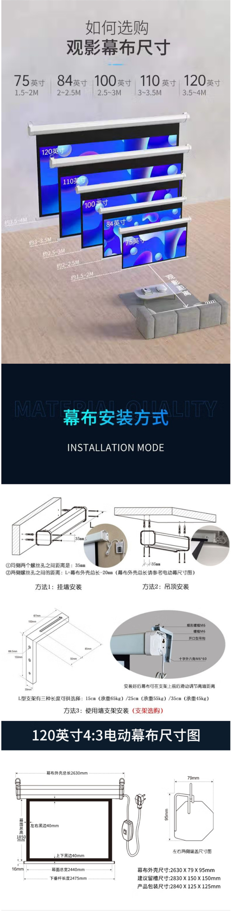 商品标题:红叶 120英寸4:3 玻珠电动遥控幕布(个)