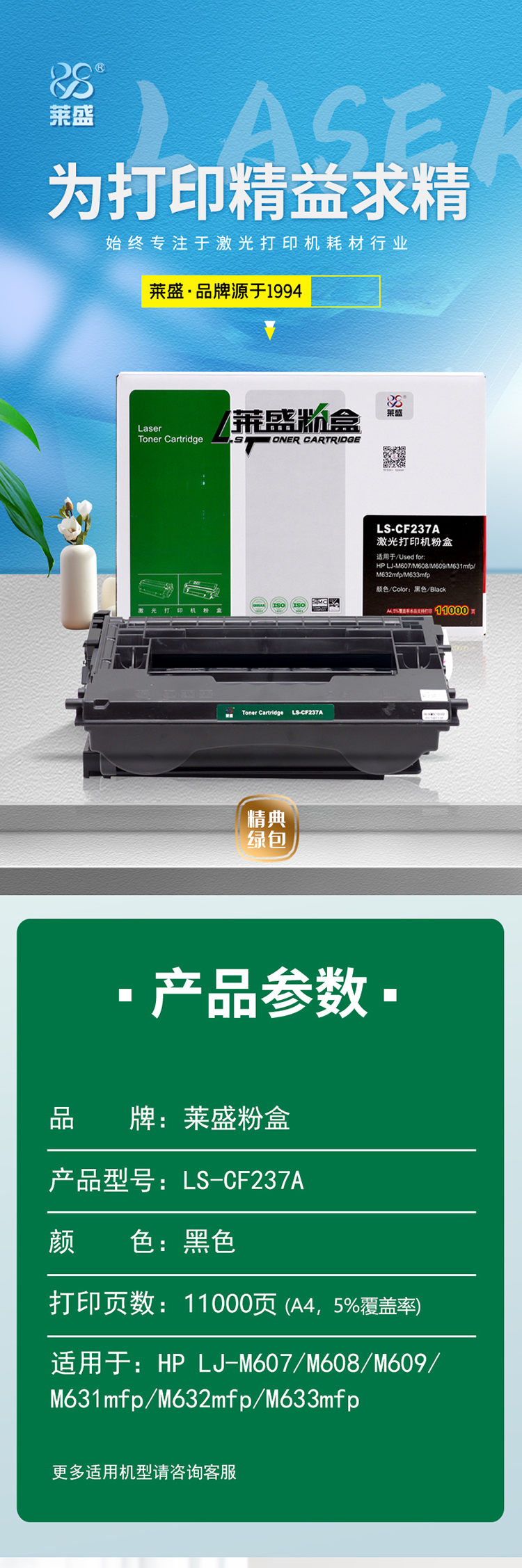 莱盛 LS-CF237A 硒鼓(鼓粉一体) 黑色单支装 (适用于HP LJ-M607/M608/M609/M631mfp/M632mfp/M633mfp) 打印页数:11000 (单位:支) 01.CTG.31100
