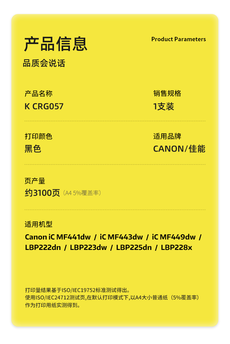 科思特(KST)兼容 K CRG057 硒鼓(鼓粉一体)黑色单支装(适用Canon iC MF441dw/iC MF443dw/iC MF449dw/LBP222dn/LBP223dw/LBP225dn/LBP228x)打印页量:3100页(单位:支)