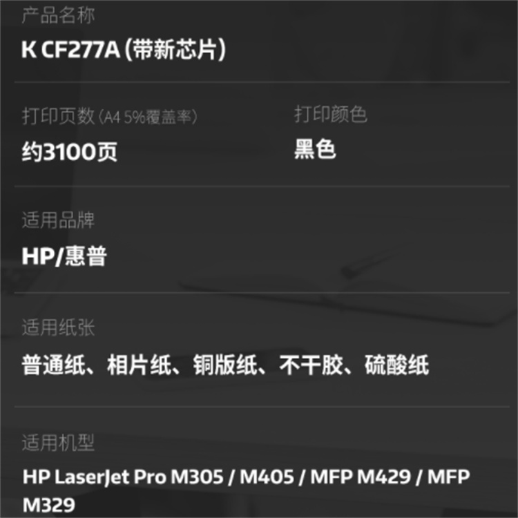 商品标题:科思特 CF277A 带新芯片硒鼓 黑色 专业版(个)