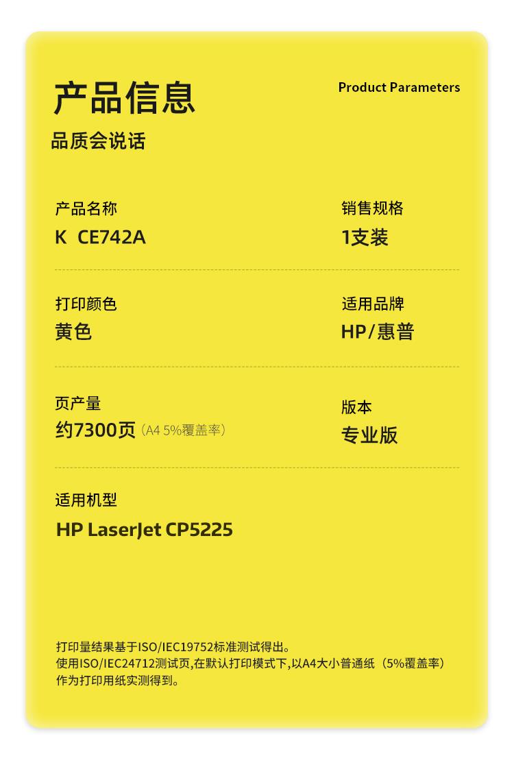 科思特(KST)兼容K CE742A硒鼓(鼓粉一体)黄色1支装(适用HP LaserJet CP5225)打印页数:7300页(支)
