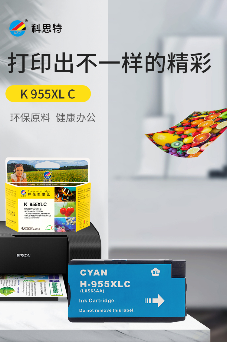 商品标题:科思特(KST)兼容K 955XL C 墨盒 蓝色单支装(适用HP OfficeJet Pro 7720/7730/7740)打印页数:1600页(单位:支)