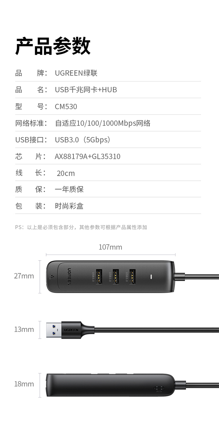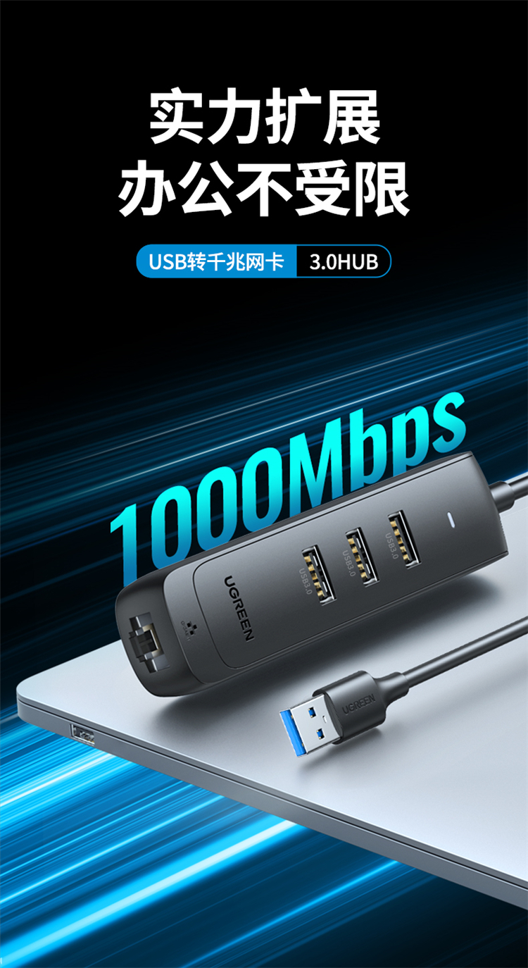 商品标题:绿联50624USB3.0分线器转千兆网口(个)