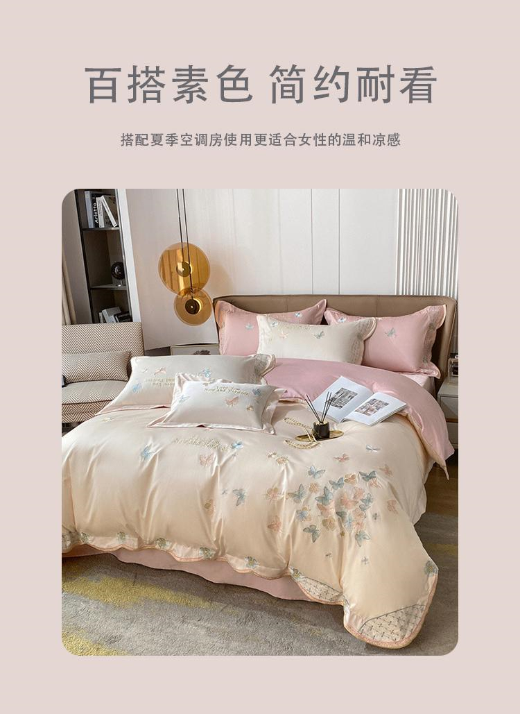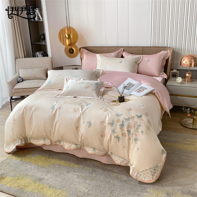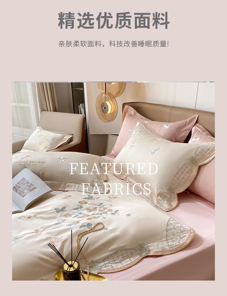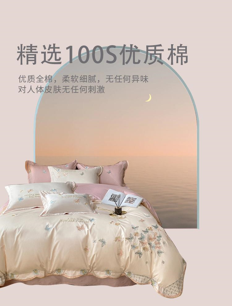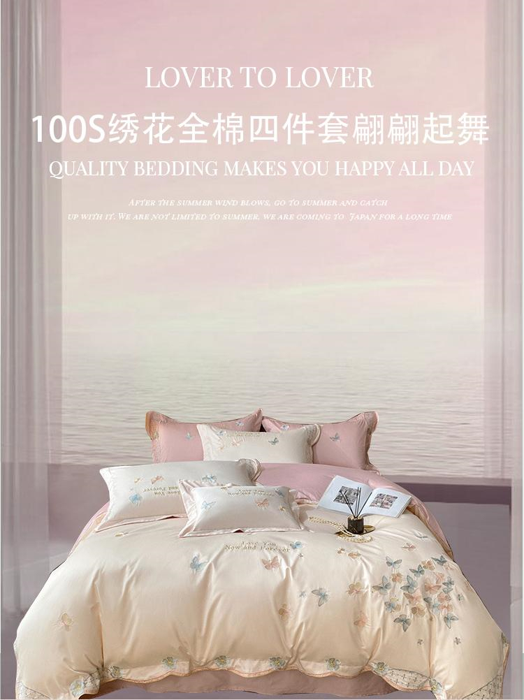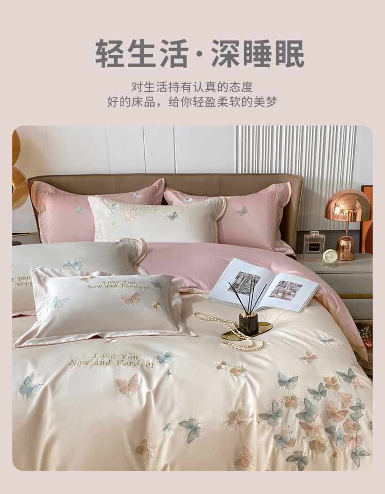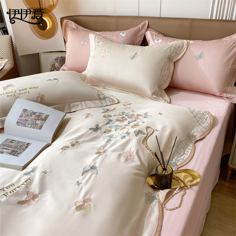 伊伊爱DTJ0KL02201661翩翩起舞刺绣100支全棉四件套200*230cm雪粉色(单位:套)