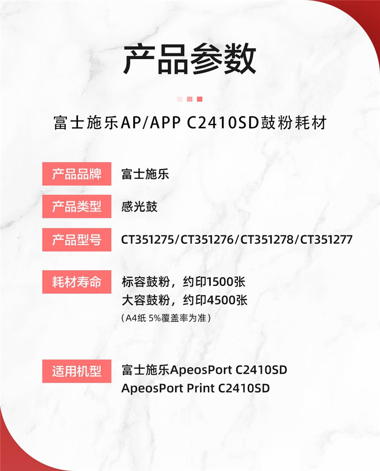 商品标题: 富士胶片CT351275(鼓粉一体)打印页数:约1500张(单位:支)
