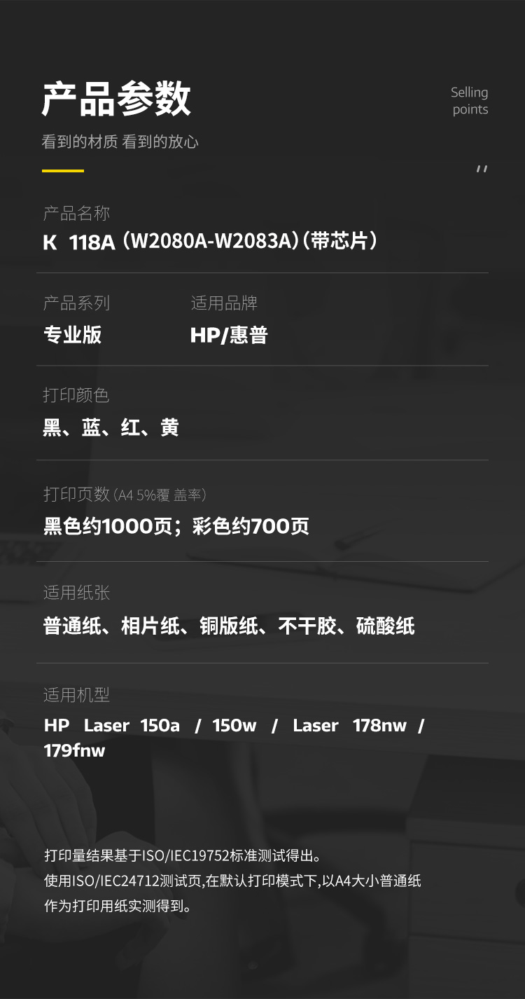 科思特(KST)兼容K 118A(W2082A)粉盒(鼓粉分离)黄色单支装(适用HP Laser 150a/150w/Laser 178nw/179fnw)打印页量:700页(单位:支)