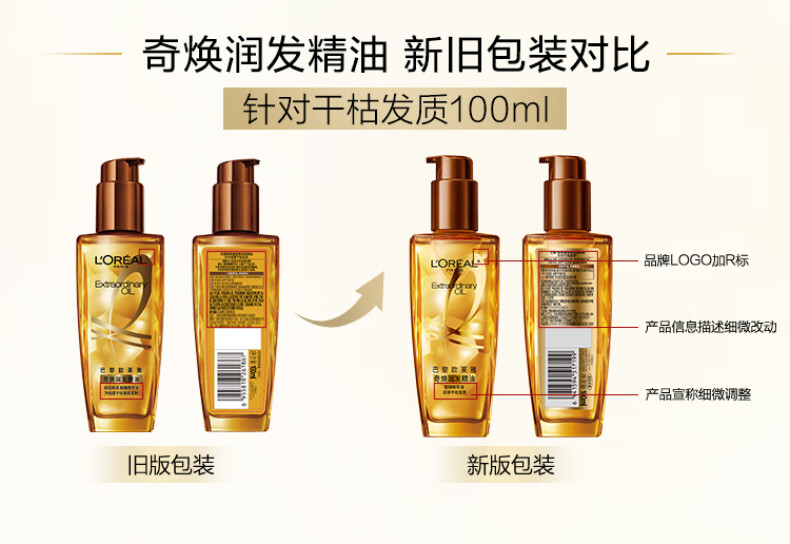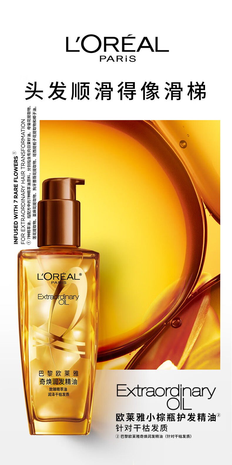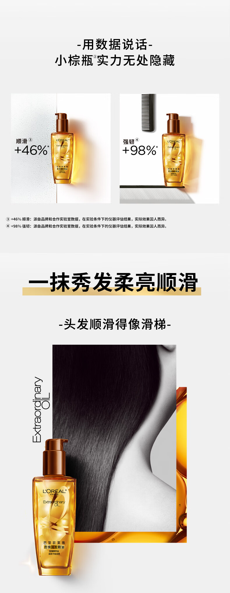 商品标题:欧莱雅奇焕润发护发精油小棕瓶100ml(针对干性发质)(瓶)