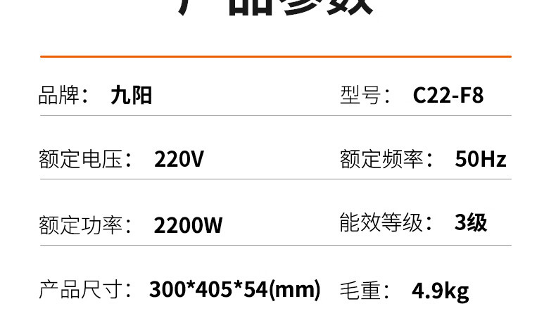 商品标题:九阳(Joyoung)C22-F8 大功率防辐射电磁炉(台)